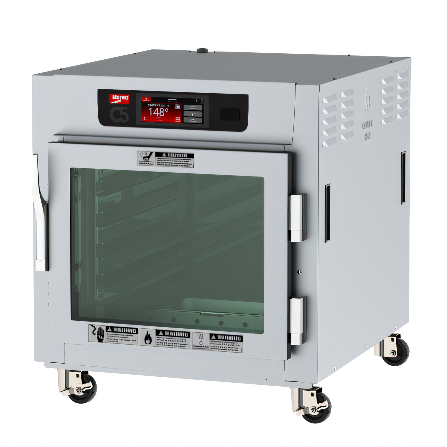 C5™ 8 Series Controlled Temperature Holding Cabinet with 6.8" touch-screen controls, mobile, undercounter, insulated, double pane glass door, lip load, (5) 18" x 26" pan capacity, 3" O.C., 3" casters, 304 stainless steel, 120v/60/1-ph, 1440 watts, 12 amps, NEMA 5-15P, cULus, NSF, Made in USA