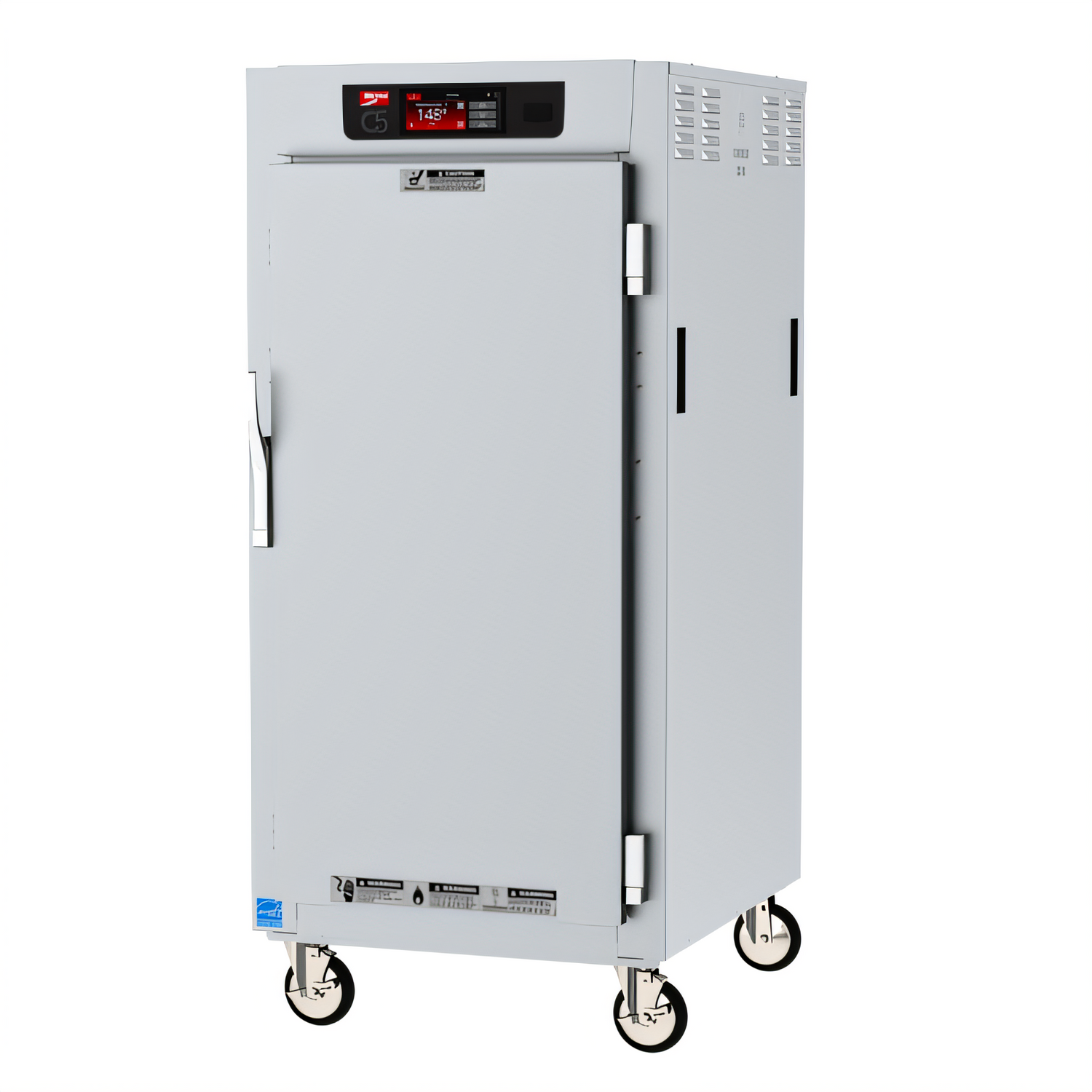 C5™ 8 Series Controlled Temperature Holding Cabinet with 6.8" touch-screen controls, mobile, 3/4 height, insulated, solid doors, universal wire slides, (14) 18" x 26" or (28) 12" x 20" x 2-1/2" pan capacity, 3" O.C. (adjustable on 1-1/2" increments), 5" casters, 304 stainless steel, 120v/60/1-ph, 2000 watts, 16.7 amps, NEMA 5-20P, cULus, NSF, Made in USA, ENERGY STAR®