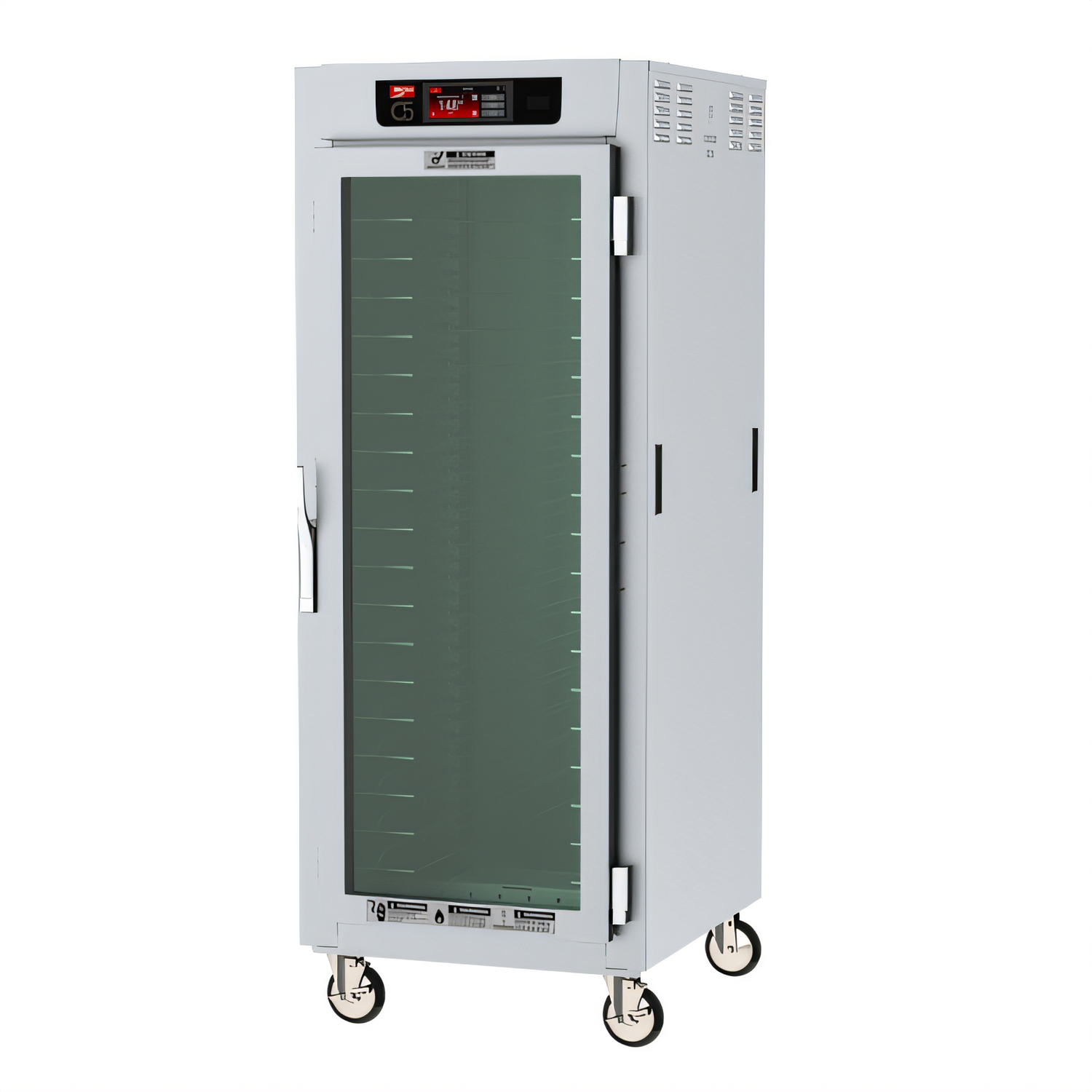 C5™ 8 Series Controlled Temperature Holding Cabinet with 6.8" touch-screen controls, mobile, full height, pass thru, insulated, (1) tempered double pane glass & (1) solid doors, universal wire slides, (18) 18" x 26" or (36) 12" x 20" x 2-1/2" pan capacity, 3" O.C. (adjustable on 1-1/2" increments), 5" casters, 304 stainless steel, 120v/60/1-ph, 2000 watts, 16.7 amps, NEMA 5-20P, cULus, NSF, Made in USA