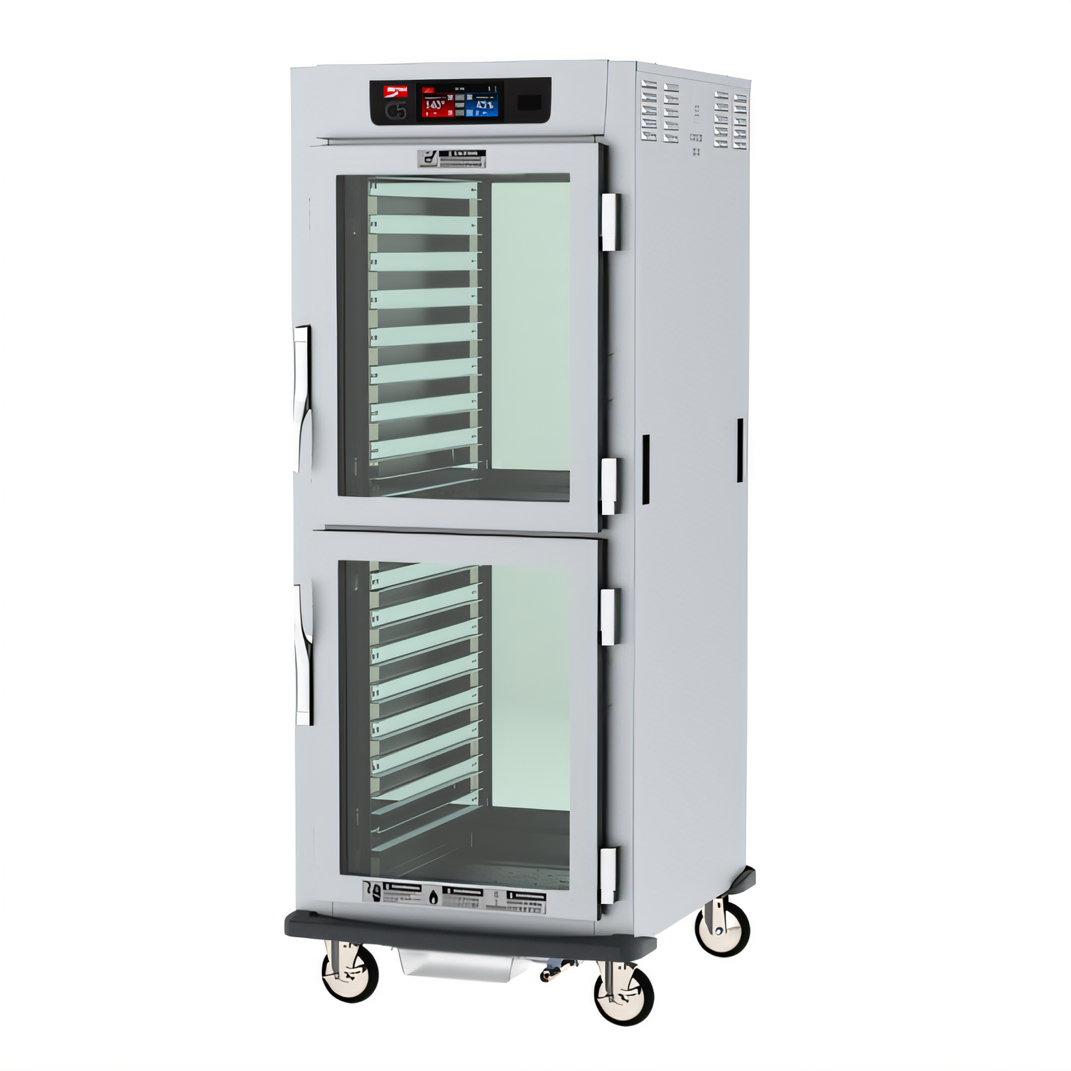 C5™ 9 Series Controlled Humidity Heated Holding and Proofing Cabinet with 6.8" touch-screen controls, mobile, full height, pass thru, (2) glass dutch doors, lip load slides, capacity (17) 18" x 26" pans, 3" O.C., stainless steel, 5" casters, polymer bumper & drip trough combination, 120v/60/1-ph, 2000 watts, 16.7 amps, NEMA 5-20P, cULus, NSF, Made in USA