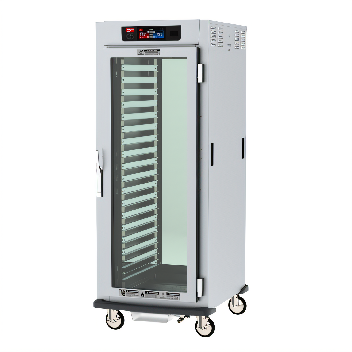 C5™ 9 Series Controlled Humidity Heated Holding and Proofing Cabinet with 6.8" touch-screen controls, mobile, full height, pass thru, (2) glass doors, lip load slides, capacity (18) 18" x 26" pans, 3" O.C., stainless steel, 5" casters, polymer bumper & drip trough combination, 120v/60/1-ph, 2000 watts, 16.7 amps, NEMA 5-20P, cULus, NSF, Made in USA