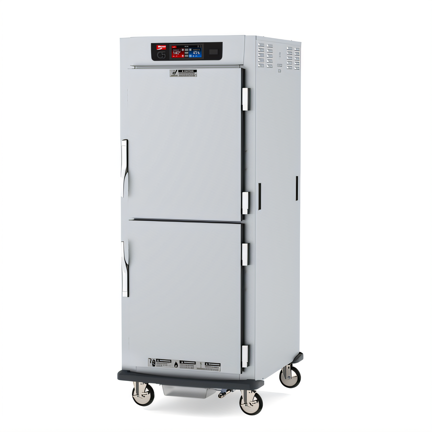 C5™ 9 Series Controlled Humidity Heated Holding and Proofing Cabinet with 6.8" touch-screen controls, mobile, full height, pass thru, (1) solid dutch & (1) glass dutch doors, lip load slides, capacity (17) 18" x 26" pans, 3" O.C., stainless steel, 5" casters, polymer bumper & drip trough combination, 120v/60/1-ph, 1440 watts, 12 amps, NEMA 5-15P, cULus, NSF, Made in USA