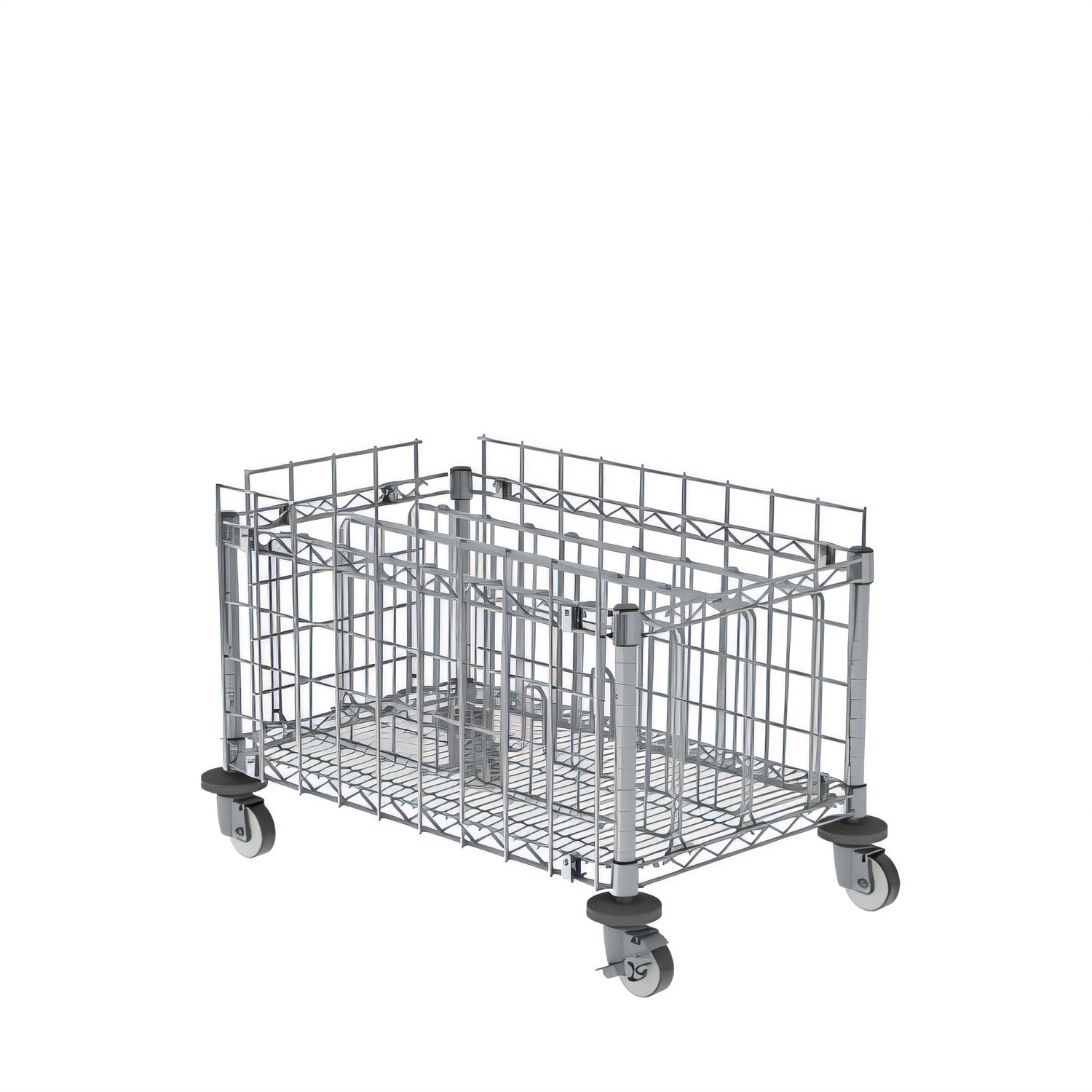 Cup Storage Unit, undercounter, 30"W x 18"D storage area, (3) removable dividers, chrome wire finish, 3" swivel casters (2 with brakes)