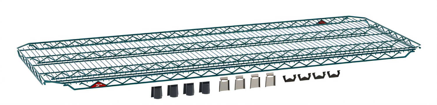 Super Erecta EZ-ADD Shelf, wire, 60"W x 24"D, corner hardware includes: (4) EZ-ADD Collars, (4) stainless steel mounting plates & (4) lock clips, Metroseal Green finish, NSF listed (ships in one box)
