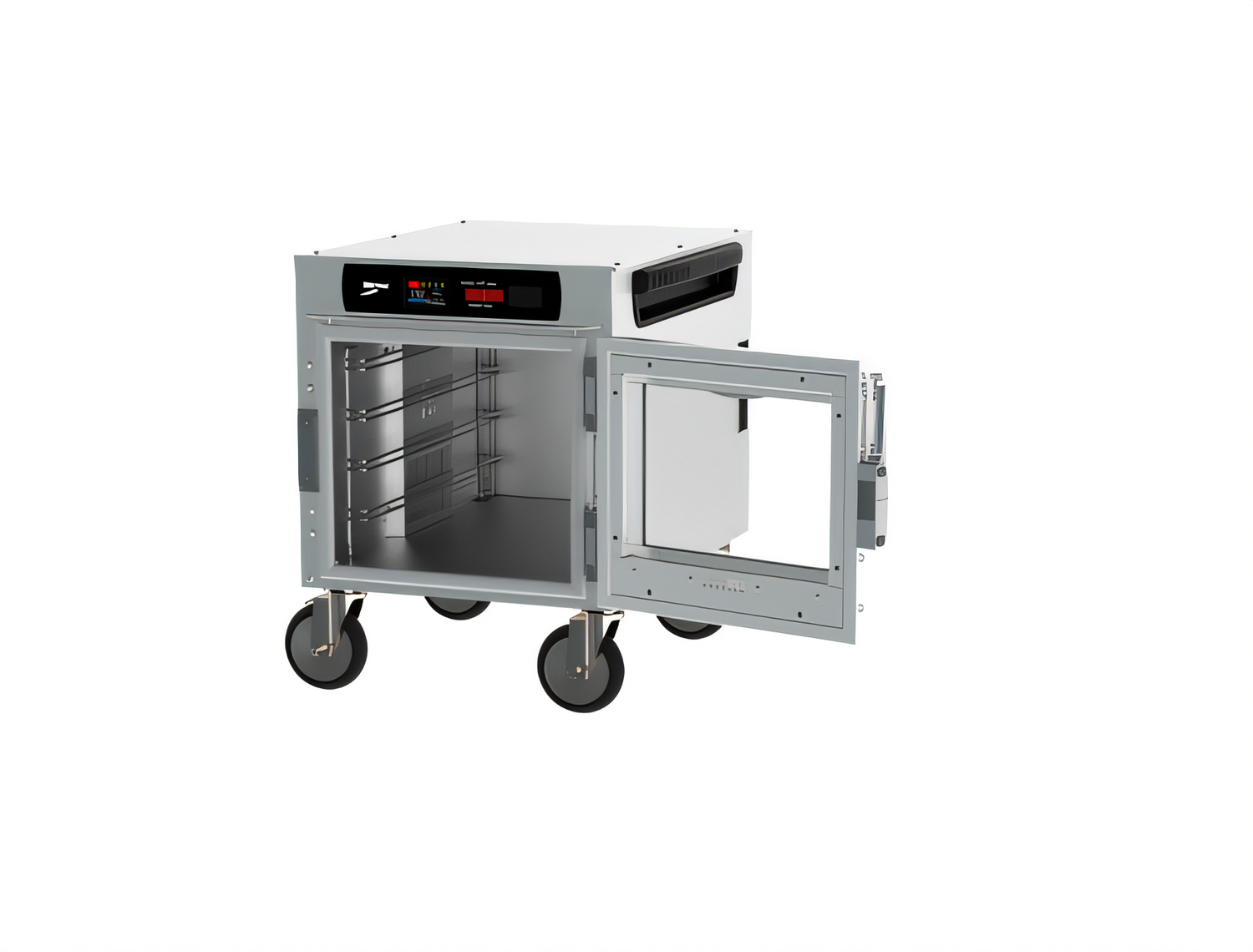 HotBlox™ Insulated Holding Cabinet, narrow (4) pan, Undercounter, 2.4" Touchscreen controls, clear door, holds full or half size steam pans or half size sheet pans, 5" casters, 875 watts, 120/60/1-ph, cord with NEMA 5-15P, aluminum, (includes accessories), UL, NSF, Made in USA