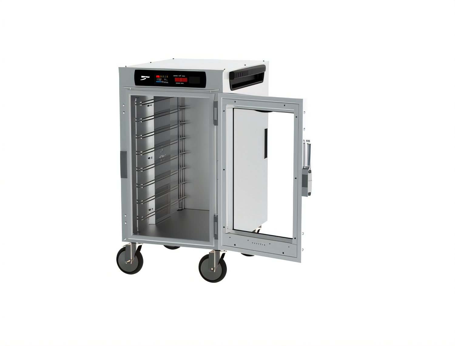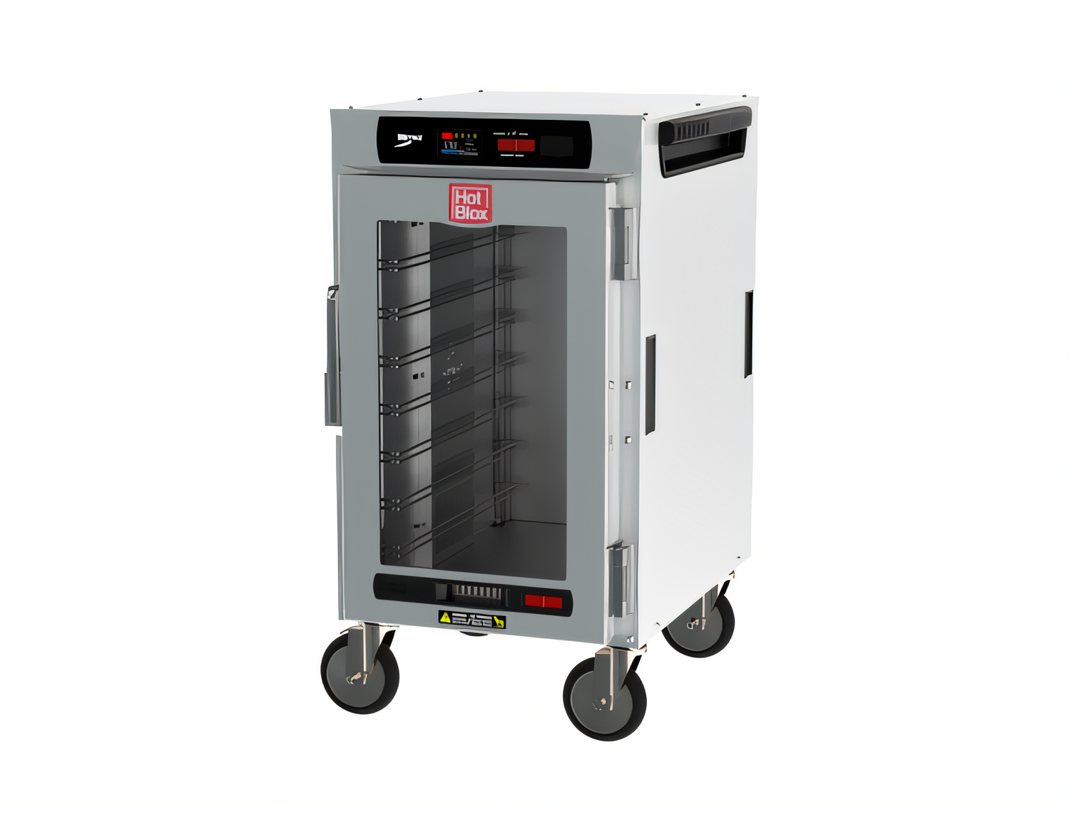 HotBlox™ Insulated Holding Cabinet, narrow (8) pan, half height mobile, 2.4" Touchscreen controls, clear door, holds full or half size steam pans or half size sheet pans, 5" casters, 875 watts, 120/60/1-ph, cord with NEMA 5-15P, aluminum, (includes accessories), UL, NSF, Made in USA