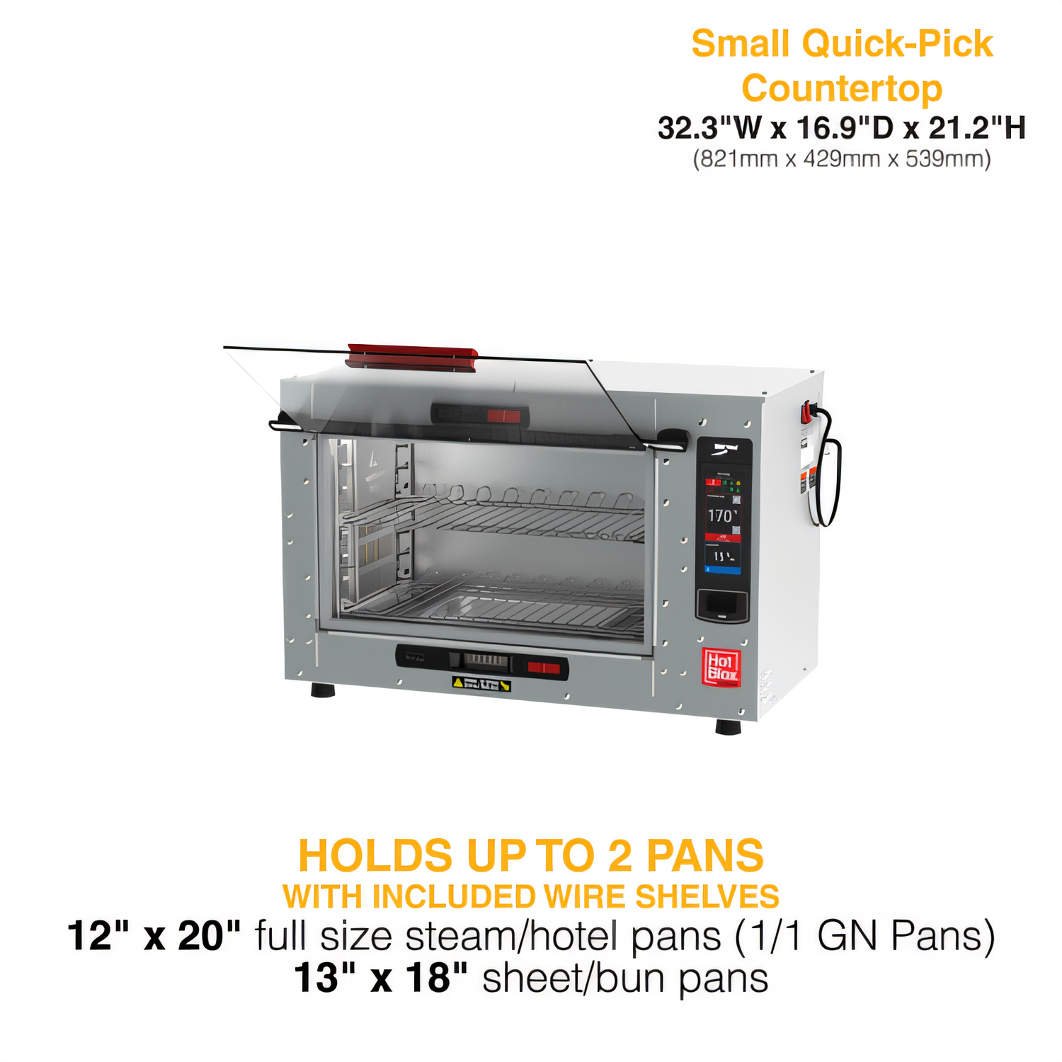 HotBlox Xpress S4 Quick Access Holding Cabinet, countertop, insulated, (2) shelves, clear flip door, Touchscreen controls, LED lighting, accommodates: half size sheet pans, full & fractional steam pans, or packaged food Items, Aluminum construction, 875W, 120v/60/1-ph, cord with NEMA 5-15P, UL, NSF