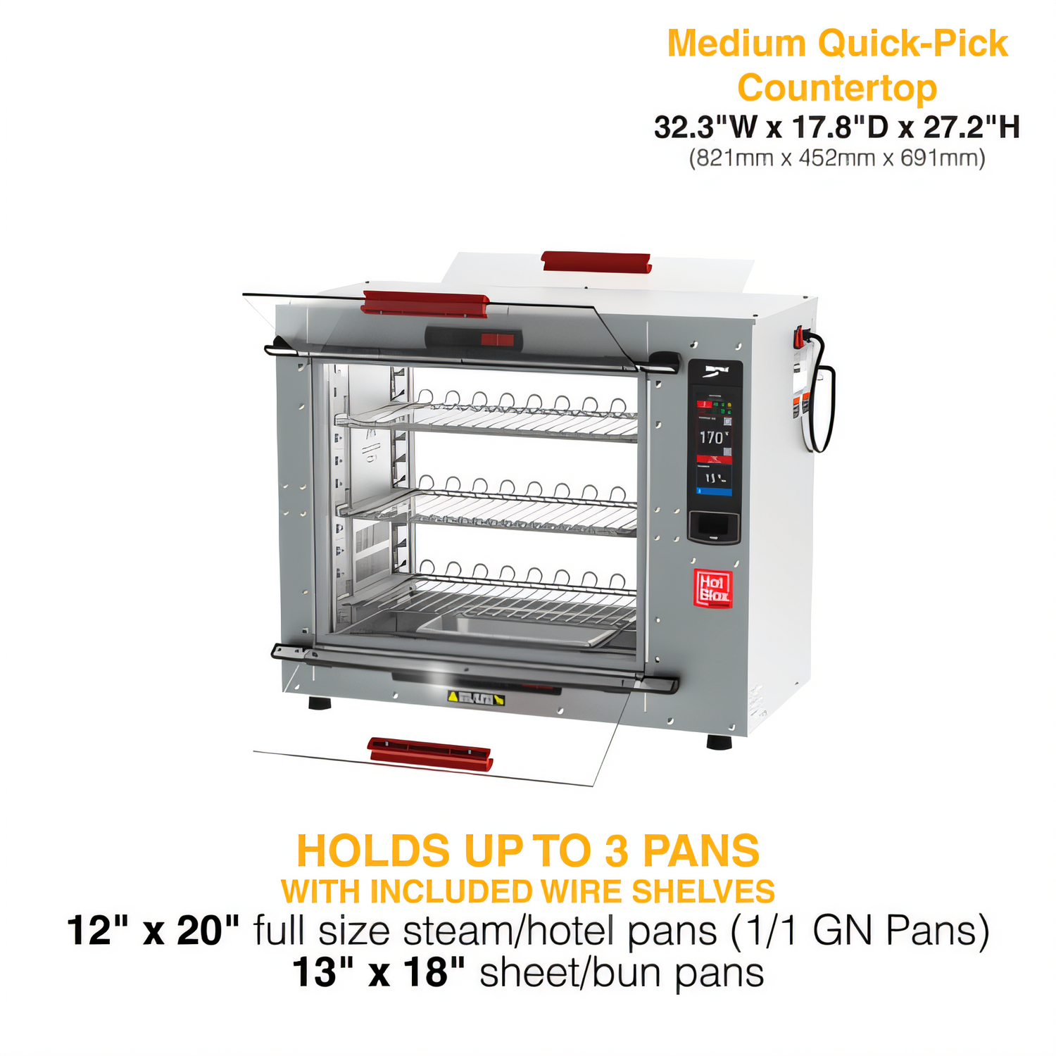 HotBlox Xpress S6 Quick Access Pass-Thru Holding Cabinet, countertop, insulated, (3) shelves, clear flip doors, Touchscreen controls, LED lighting, accommodates: half size sheet pans, full & fractional steam pans, or packaged food Items, Aluminum construction, 875W, 120v/60/1-ph, cord with NEMA 5-15P, UL, NSF
