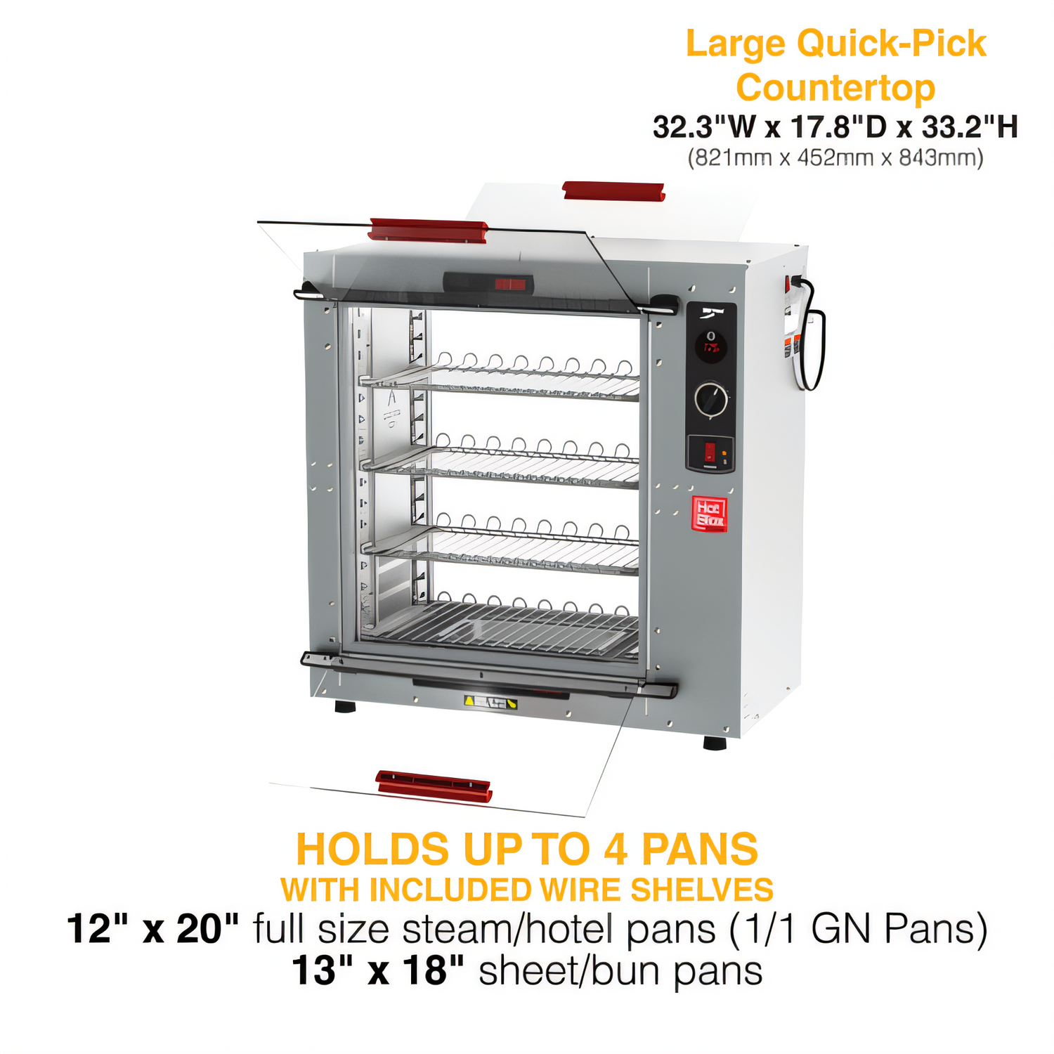 HotBlox Xpress S8 Quick Access Pass-Thru Holding Cabinet, countertop, insulated, (4) shelves, clear flip doors, basic controls, LED lighting, accommodates: half size sheet pans, full & fractional steam pans, or packaged food Items, Aluminum construction, 875W, 120v/60/1-ph, cord with NEMA 5-15P, UL, NSF