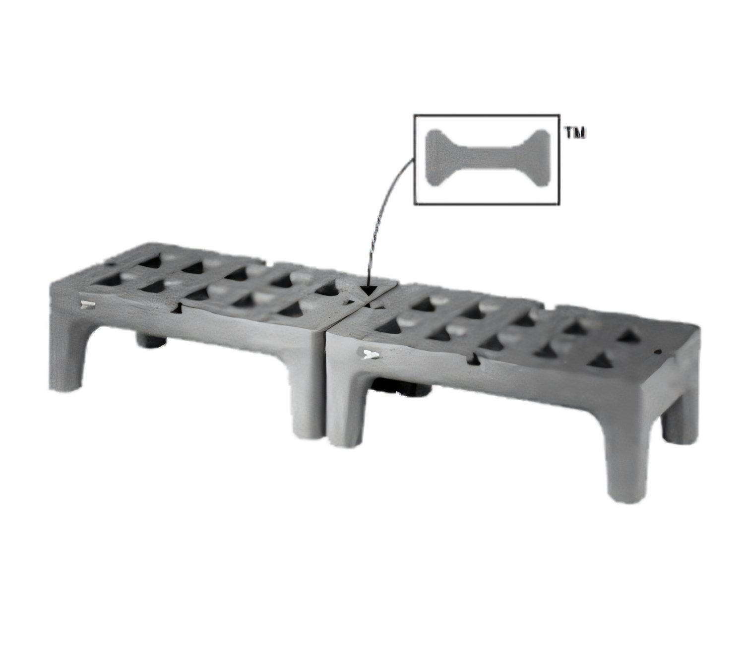 Metro Bow-Tie™ Dunnage Rack, 22" x 36" x 12"H, slotted, holds up to 1,500 lbs., with separate polymer tie for joining racks, Microban® antimicrobial product protection, rust & corrosion proof polymer construction, NSF