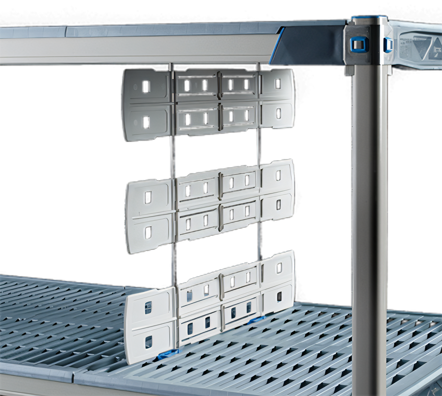 Shelf-to-Shelf Divider, 18"D, 16"H, 4" polypropylene panels & stainless steel rods, includes: (4) polyethylene mounting clips, for use with 18" & 21"D open grid & wire shelves, NSF