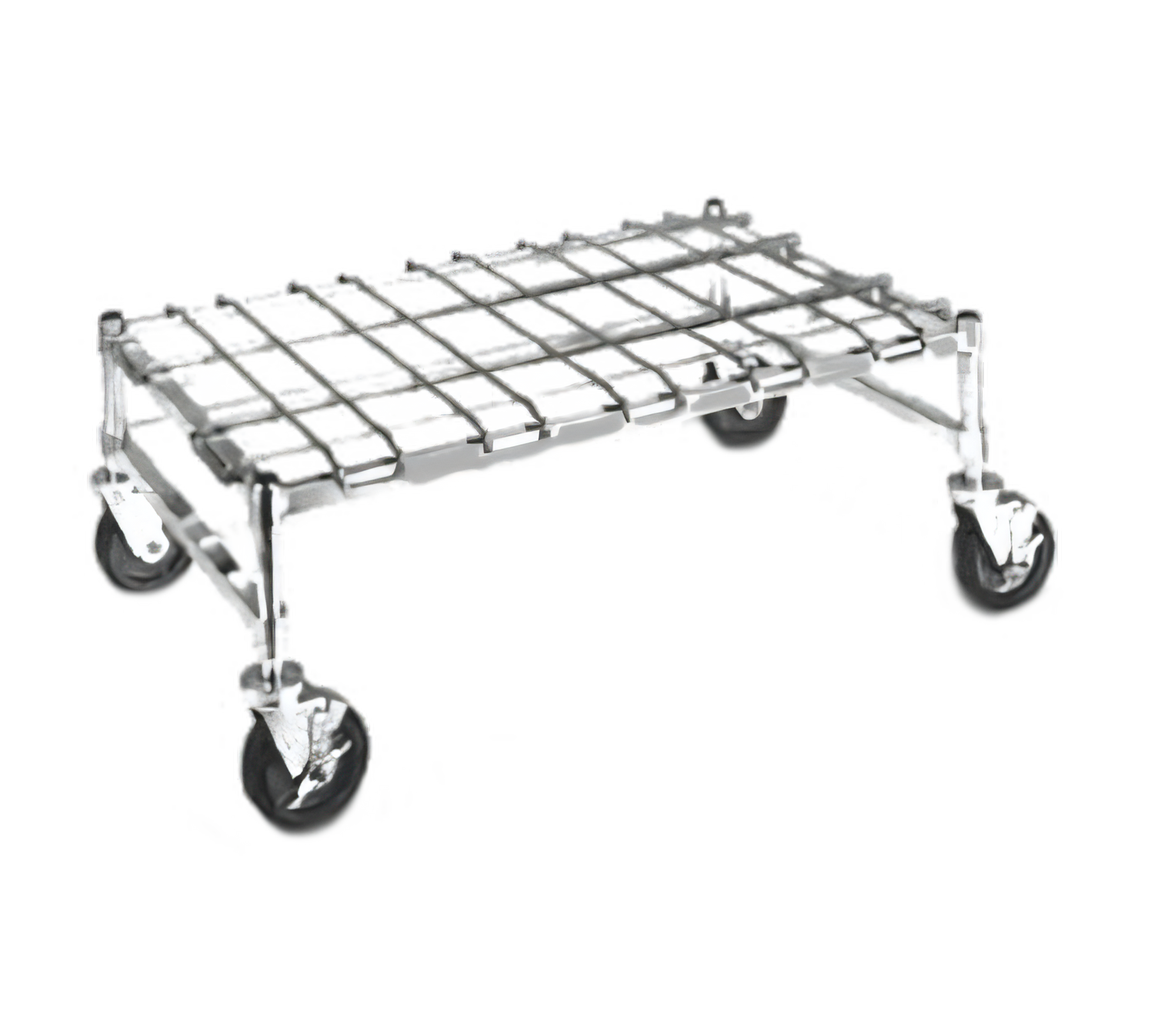 Dunnage Rack, mobile, 36"W x 18"D (2) swivel & swivel/brake casters, 800 lb capacity, non-marking polyurethane tread, 1" square tubing, removable mat 5/16"D wire, designed only for 5HP & 5HPB casters, comes assembled with the special posts, stainless steel, NSF