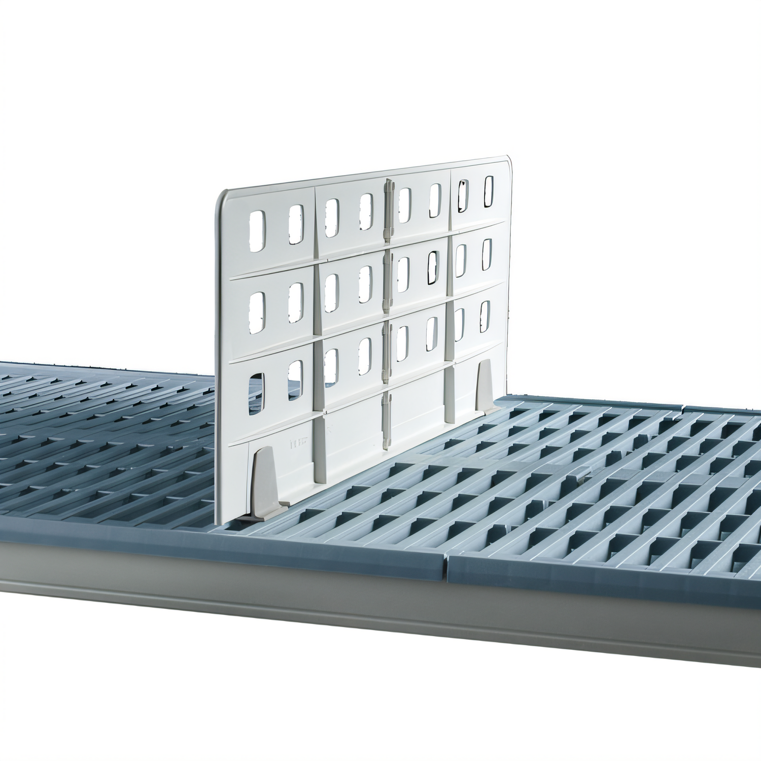 Quick Ship - Universal Shelf Divider, light duty, 24"W x 8"H, for grid or wire shelving, three-piece design, clips into place, polymer, NSF
