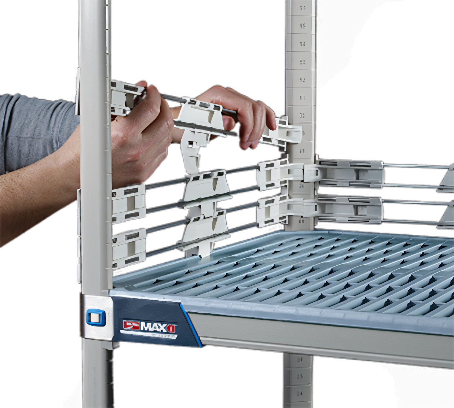MetroMax® iQ™ Stackable Shelf Ledge, 24"W x 2"H, back, snaps on, polymer & stainless steel, NSF