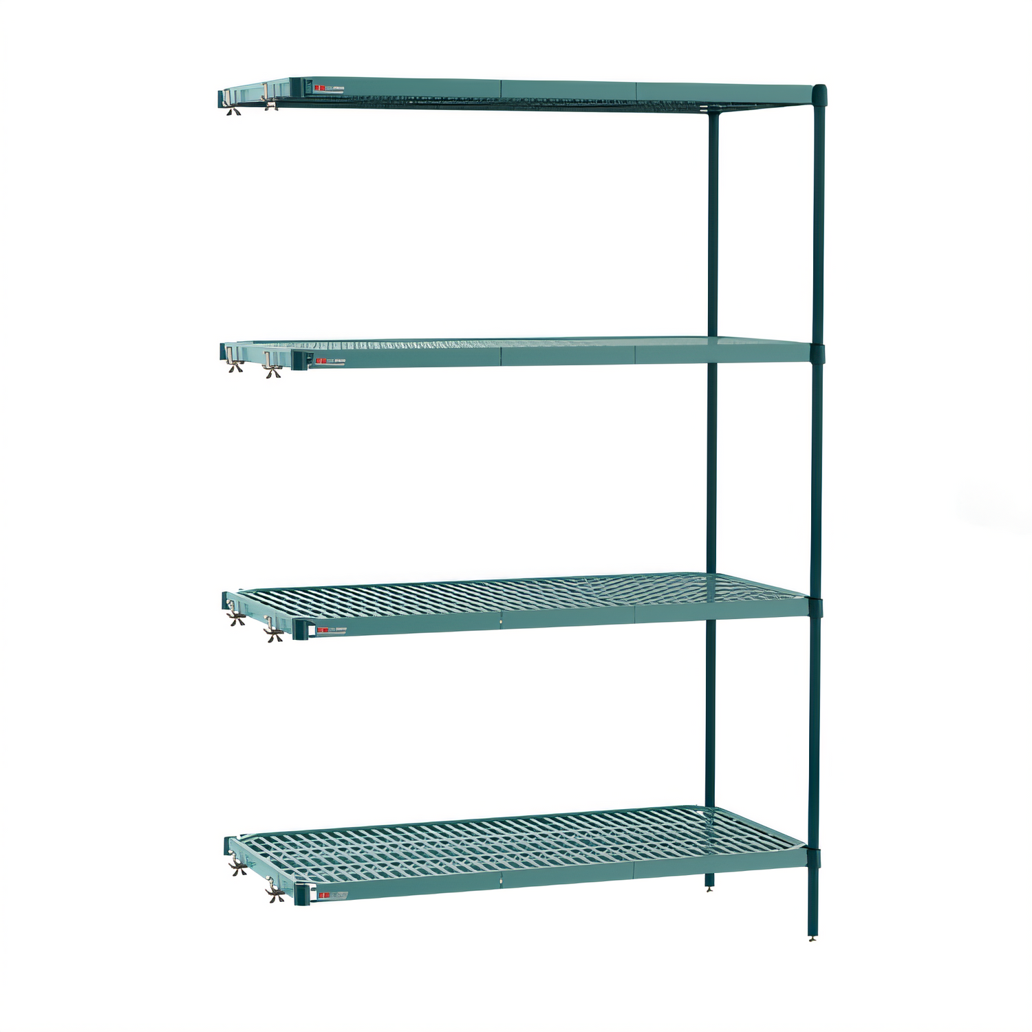 Super Erecta Pro® Add-on Unit, 21"W x 54"D x 63"H, (4) corrosion resistant shelves with removable polymer shelf mats, (4) bags of split sleeves, (2) posts, (8) MetroMax Q Intermediate S-Hooks, NSF