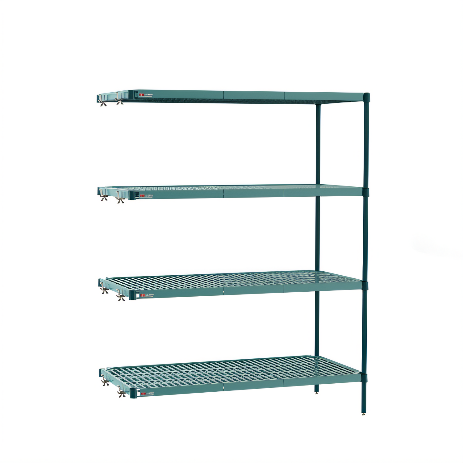 Super Erecta Pro® Add-on Unit, 21"W x 72"D x 74"H, (4) corrosion resistant shelves with removable polymer shelf mats, (4) bags of split sleeves, (2) posts, (8) MetroMax Q Intermediate S-Hooks, NSF