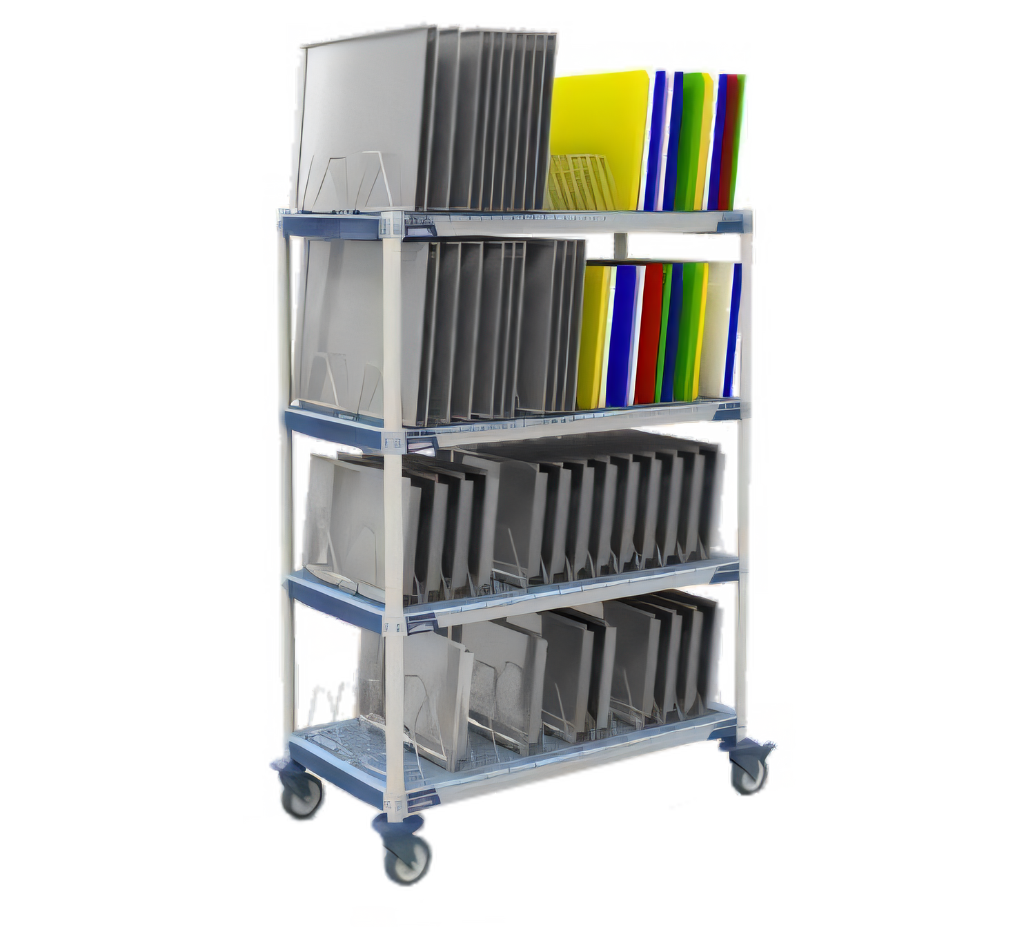 MetroMax® i Mobile Drying Rack Unit, 48"W x 24"D x 68"H, 4-tier, includes: (4) shelves, (4) 63" mobile posts, (2) cutting board/tray drying racks, (2) pan racks, (4) polymer swivel casters (2 with brakes), built in Microban® antimicrobial product protection, NSF