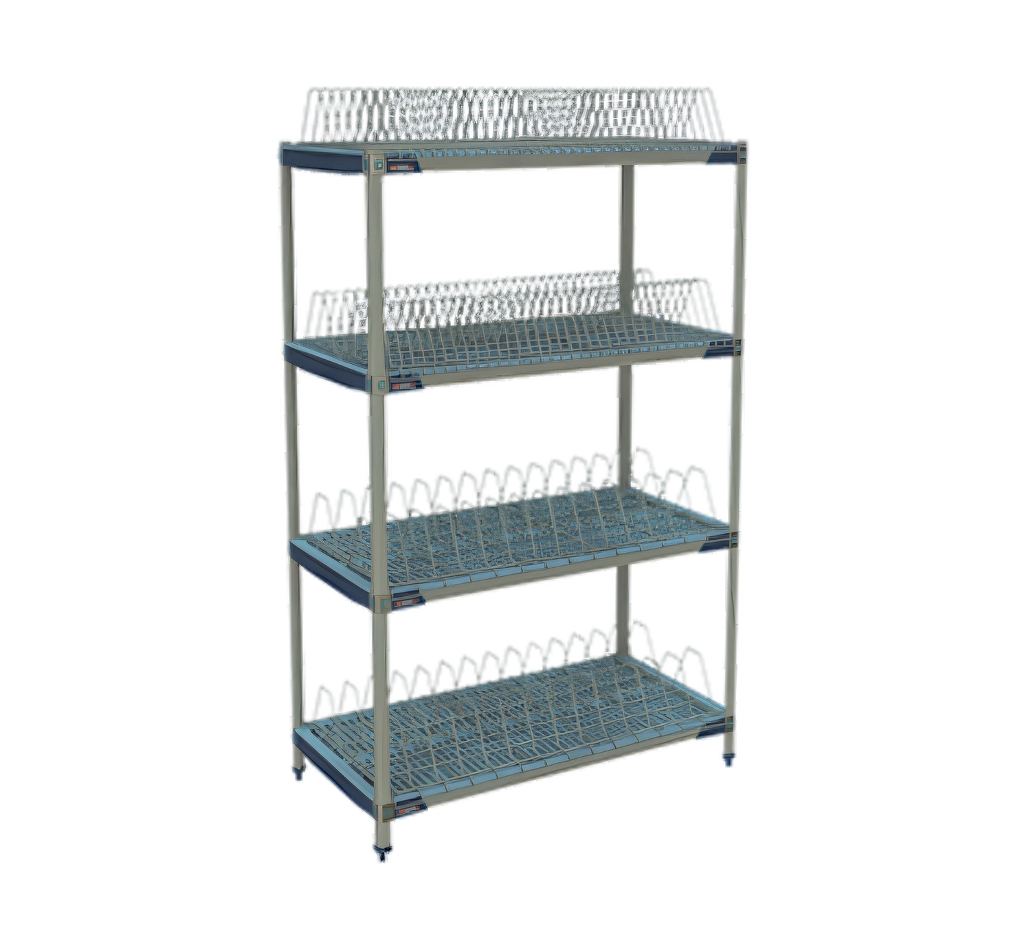 MetroMax® i Stationary Drying Rack Unit, 48"W x 24"D x 74"H, 4-tier, includes: (4) shelves, (4) 74" posts, (2) cutting board/tray drying racks, (2) pan racks, built in Microban® antimicrobial product protection, NSF