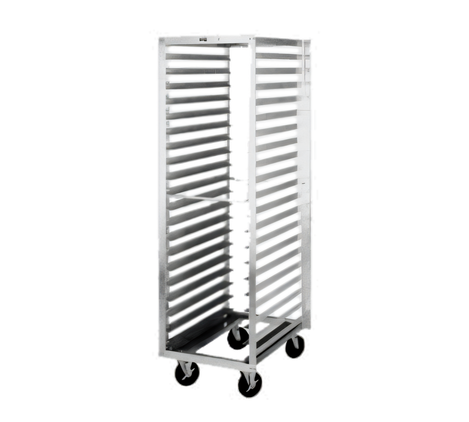 Tray Rack, mobile, end load, single section, pass-thru, 21-1/4"W x 69-1/4"H, 26-1/2"D, pass-thru, open sides with slides for (40) 18" x 26" pans, slides on 1-1/2" centers, riveted aluminum construction, NSF