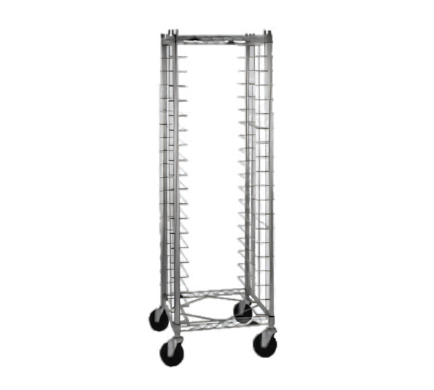 Wire Bun Pan Rack, mobile, end load, 21-3/4" x 27"L x 69"H, pan capacity (38) 18" x 26" pans, slides on 1-1/2" centers, UPS shippable, no tool assembly, 5" swivel casters, Brite (zinc) finish, NSF