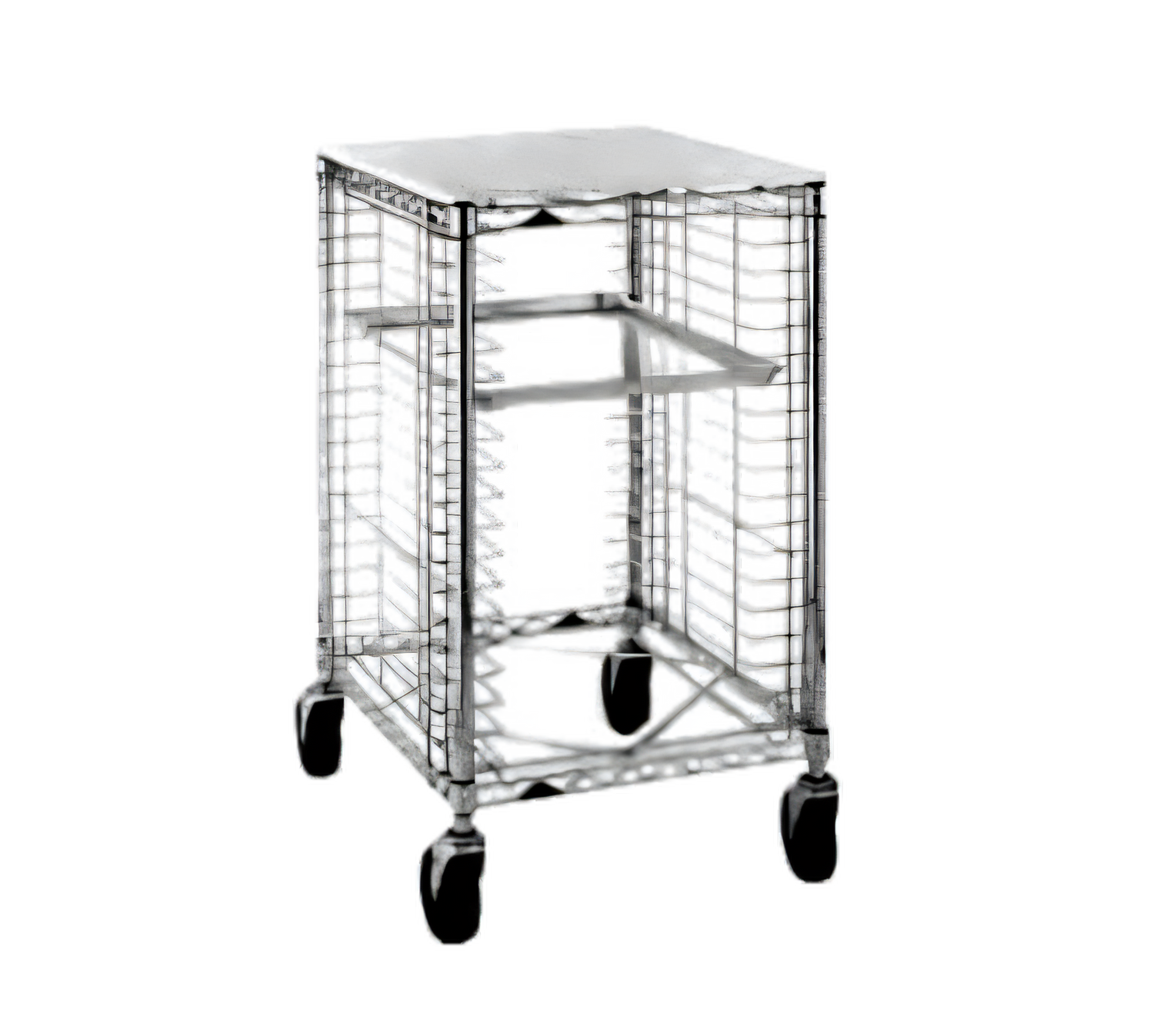Portable Wire Prep Rack, mobile, end load, 21-3/4"W x 27"L x 36"H, open sides, 16 pan capacity for 18" x 26" pans, slides on 1-1/2" centers, UPS shippable, easy assembly, 5" swivel casters, NSF