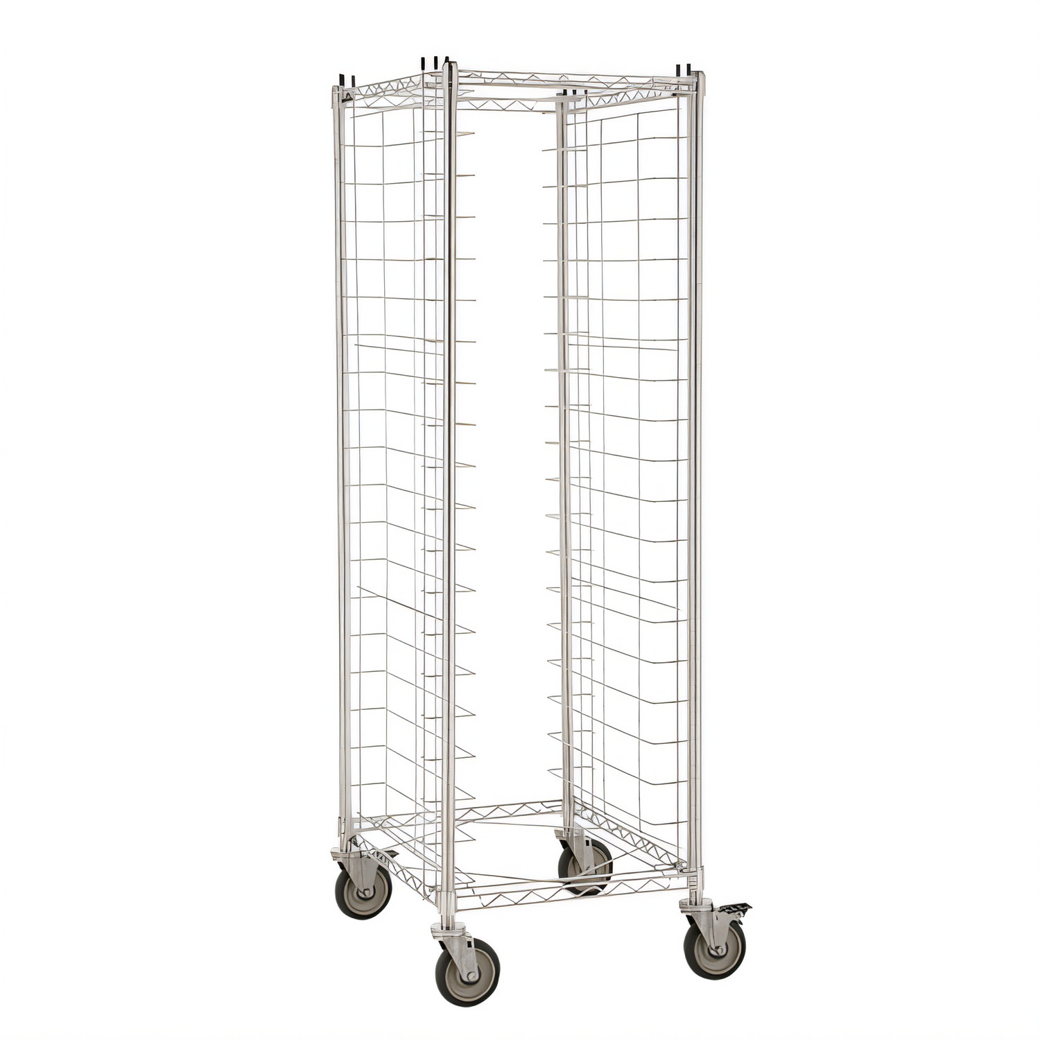 RE3S Mobile Drying Rack, holds (20) 18" x 16" trays, front loading, 3" wire spacing, 30lb weight capacity per level, rust proof casters, 304 stainless steel construction, NSF