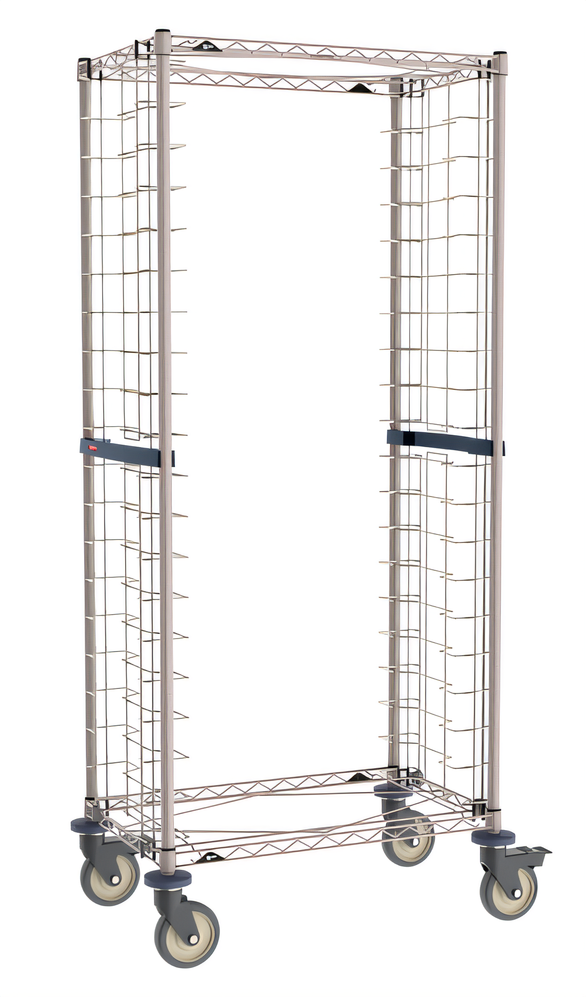 Wire Bun Pan Rack, mobile, side load, 20-3/4"W x 31-1/4"D x 69"H, (20) 18" x 26" pan capacity, slides on 3" centers, brite zinc finish, 5" swivel casters, NSF, UPS