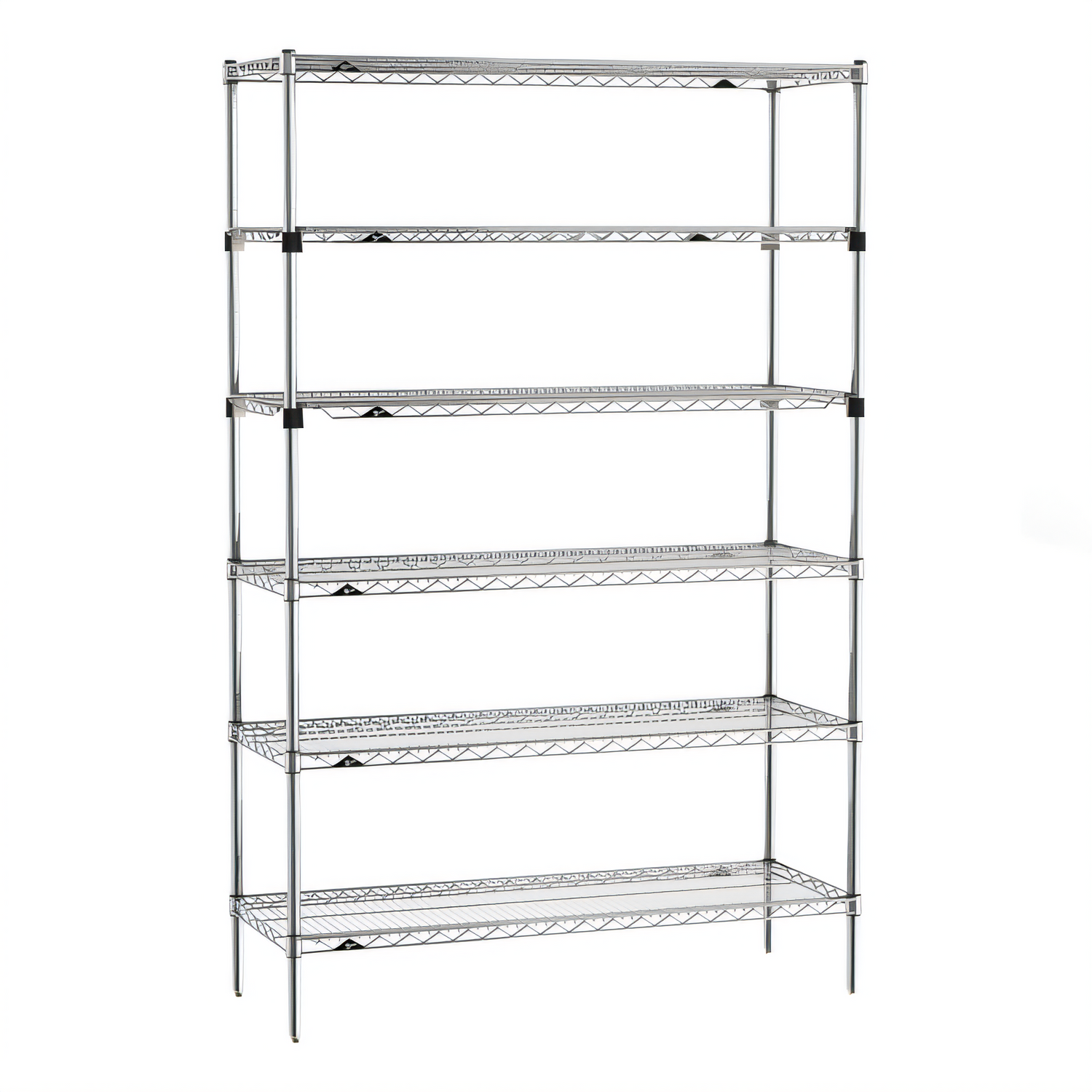 Super Erecta® Starter Shelving Unit, 48"W x 18"D x 74"H, (6) tiers, (4) Super Erecta wire shelves, (2) EZ-ADD shelves, (4) posts, chrome plated finish, KD, NSF