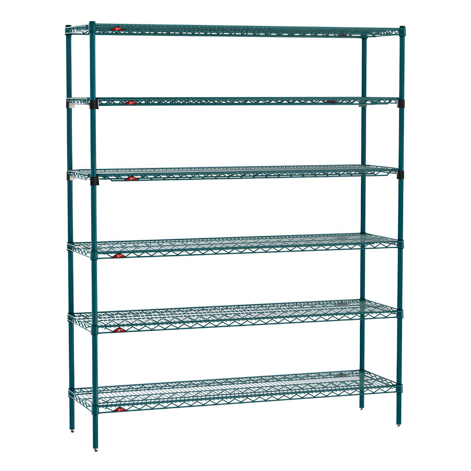 Super Erecta® Starter Shelving Unit, 60"W x 18"D x 74"H, (6) tiers, (4) Super Erecta wire shelves, (2) EZ-ADD shelves, (4) posts, Metroseal 3 Green epoxy coated corrosion-resistant finish with Microban® antimicrobial protection finish , KD, NSF
