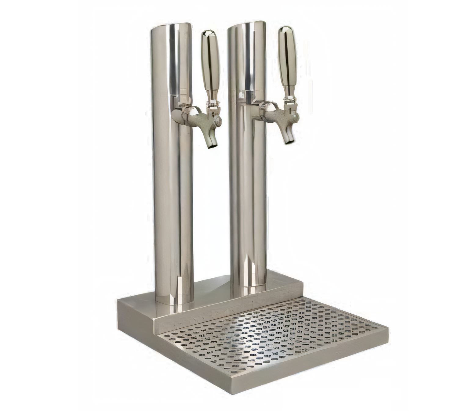 Skyline Draft Beer Station, countertop, 12"W x 19"H, glycol-cooled (Kool-Rite™ integrated module), (2) 2-1/2" dia. 304 stainless steel columns, (1) 304 stainless steel faucet per column (handles not included), 11" faucet clearance, integrated drip pan with removable perforated insert, 304 stainless steel beer line & leak-proof shanks, includes cooling block & copper coolant lines, mounting gaskets & hardware provided, polished stainless steel finish