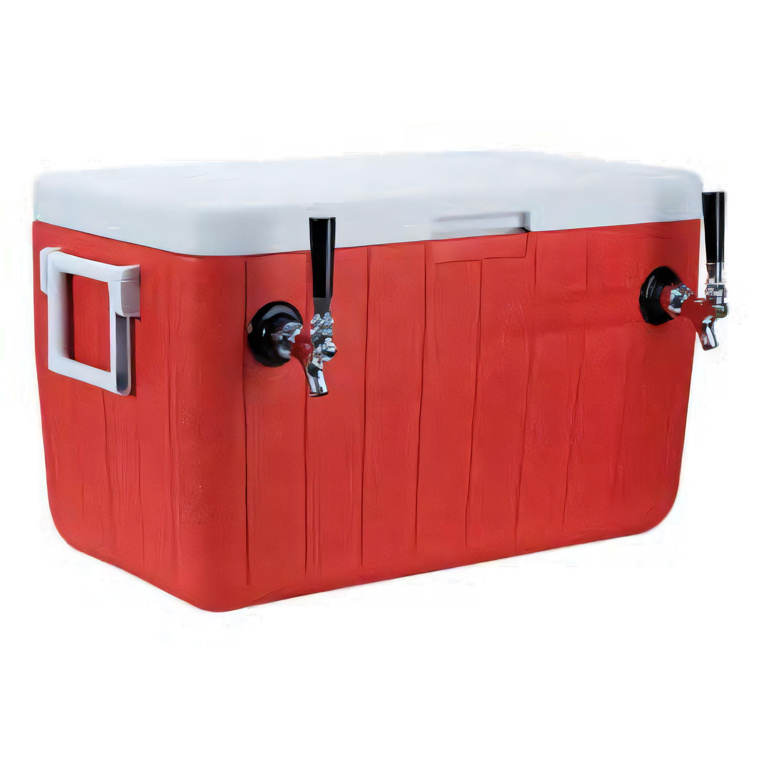 Coil Cooler, 48 quart, 100/20 ft coil length, 3/8" with 1/4" choke, (2) faucets, shanks, ice box coupler assemblies, heavy duty side handles, 95° hold open lid with snap-lock child safety latch, recessed drain plug, red exterior