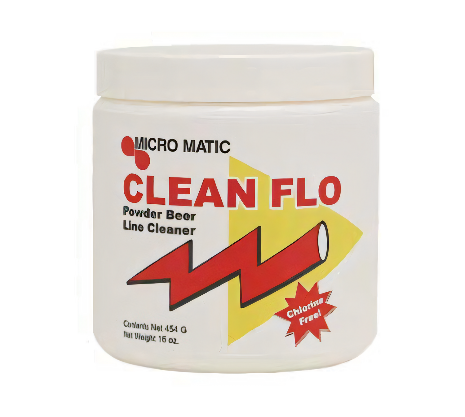 Micro Matic USA Clean Flo Powder 16 oz tub — powerful floor cleaning concentrate for tough dirt and residue, fast dissolving formula.