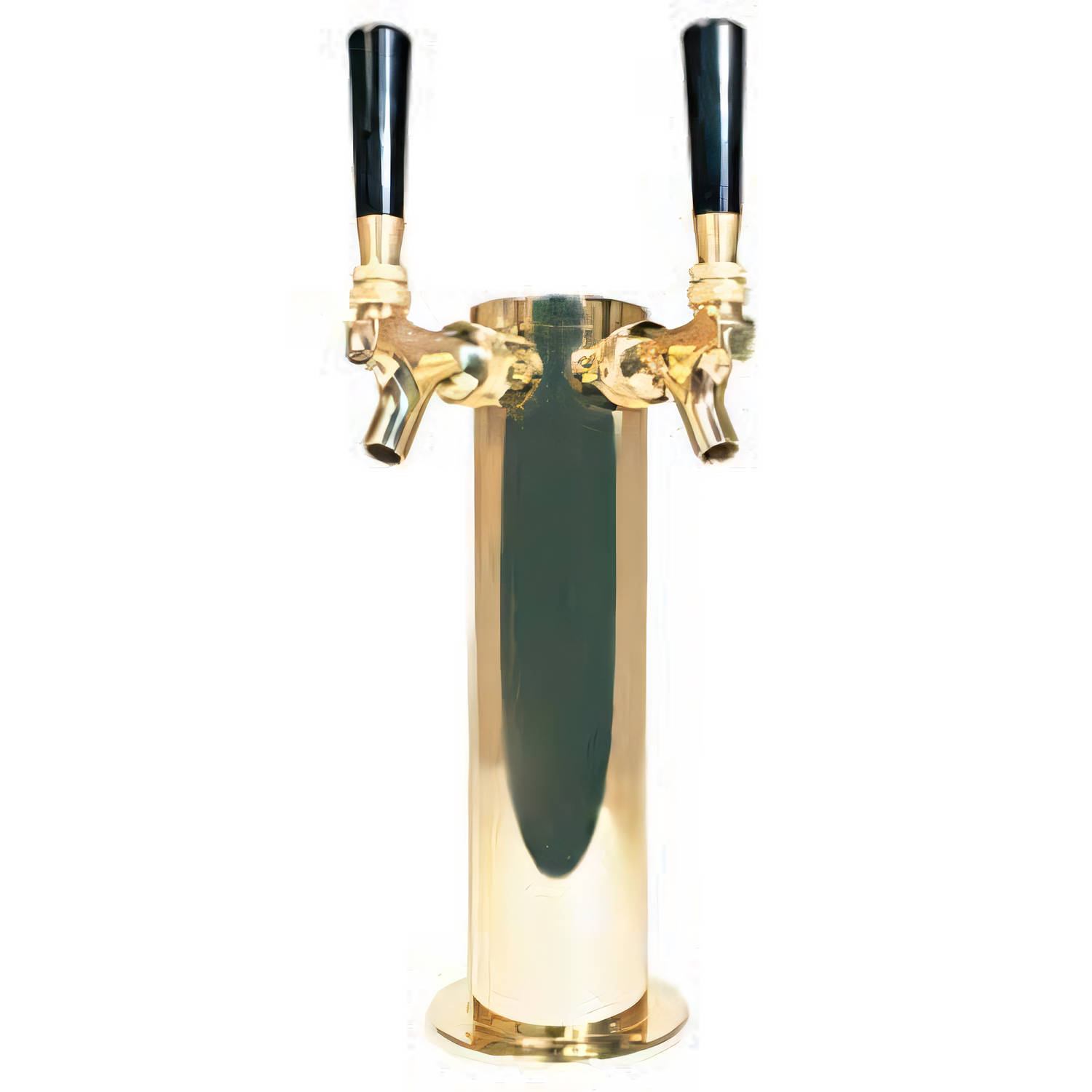 Column Draft Beer Tower, countertop, 3" dia. x 12"H, glycol-cooled (Kool-Rite™ integrated module), (2) PVD brass-plated stainless steel faucets (handles not included), 9-1/4" faucet clearance, 4-1/2" dia. base, 304 stainless steel product lines & copper coolant lines, mounting gaskets & hardware provided, PVD brass finish, NSF
