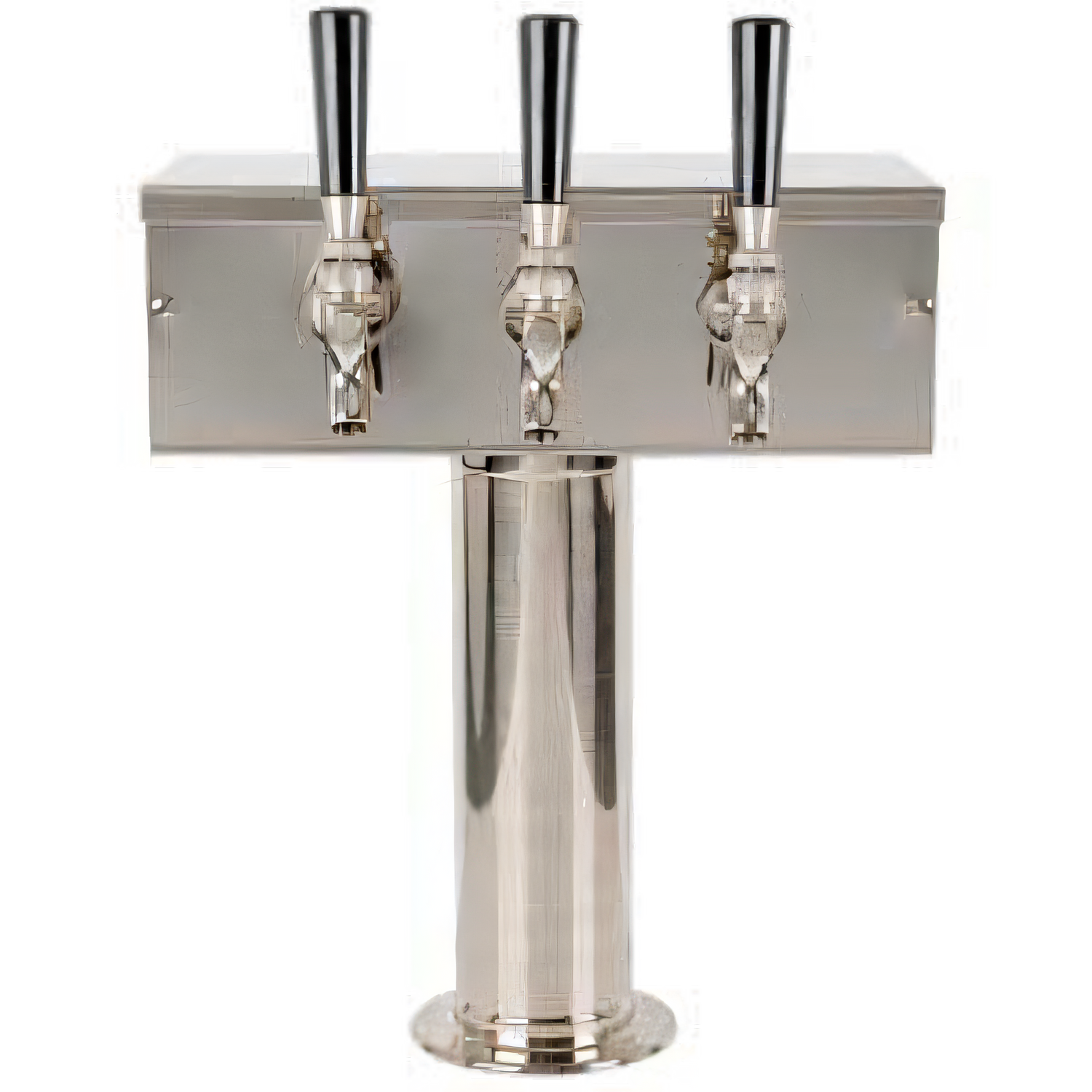 T Style Draft Beer Tower, countertop, 12"W x 14-3/4"H, air-cooled, (3) chrome-plated brass faucets (handles not included), 3" OC, 11-1/4" faucet clearance, 3" dia. column with 4-1/4" dia. base, mounting gaskets & hardware provided, polished stainless steel finish