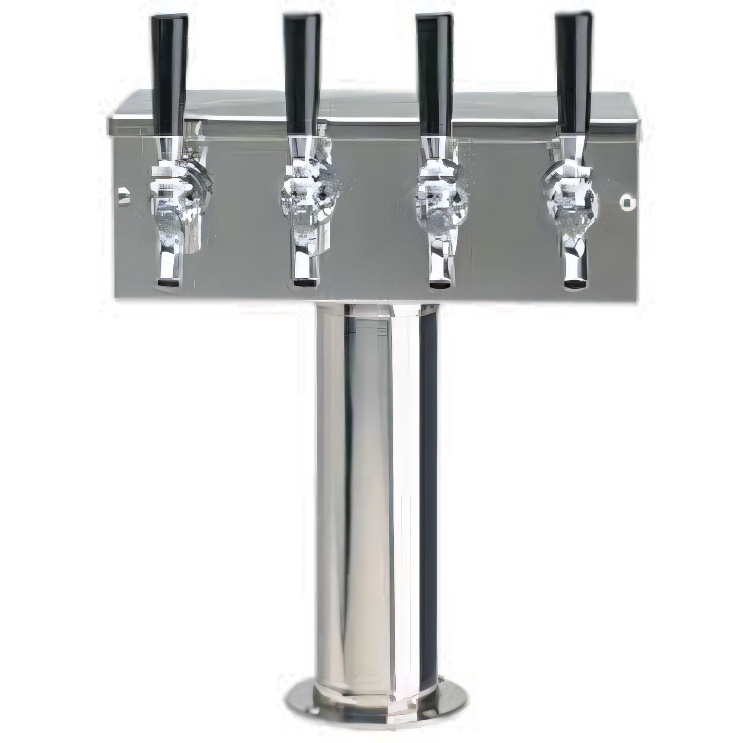 T Style Draft Beer Tower, countertop, 12"W x 14-3/4"H, air-cooled, (4) chrome-plated brass faucets (handles not included), 3" OC, 11-1/4" faucet clearance, 3" dia. column with 4-1/4" dia. base, mounting gaskets & hardware provided, polished stainless steel finish