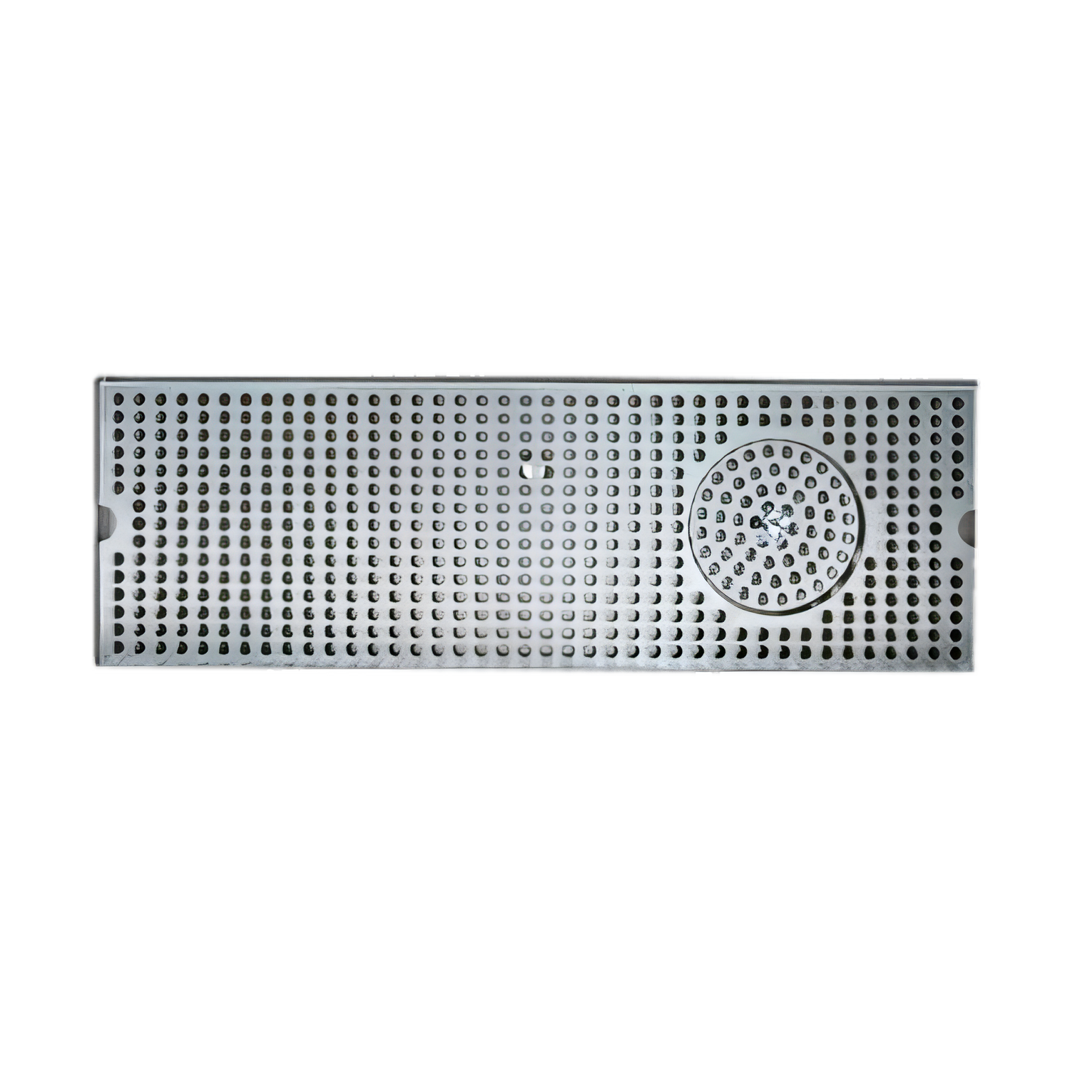 Drip Tray Trough, surface mount, 24"W x 5"D, integral glass rinser (NSF-certified), perforated stainless steel screen 5/8" O.D. drain, stainless steel construction