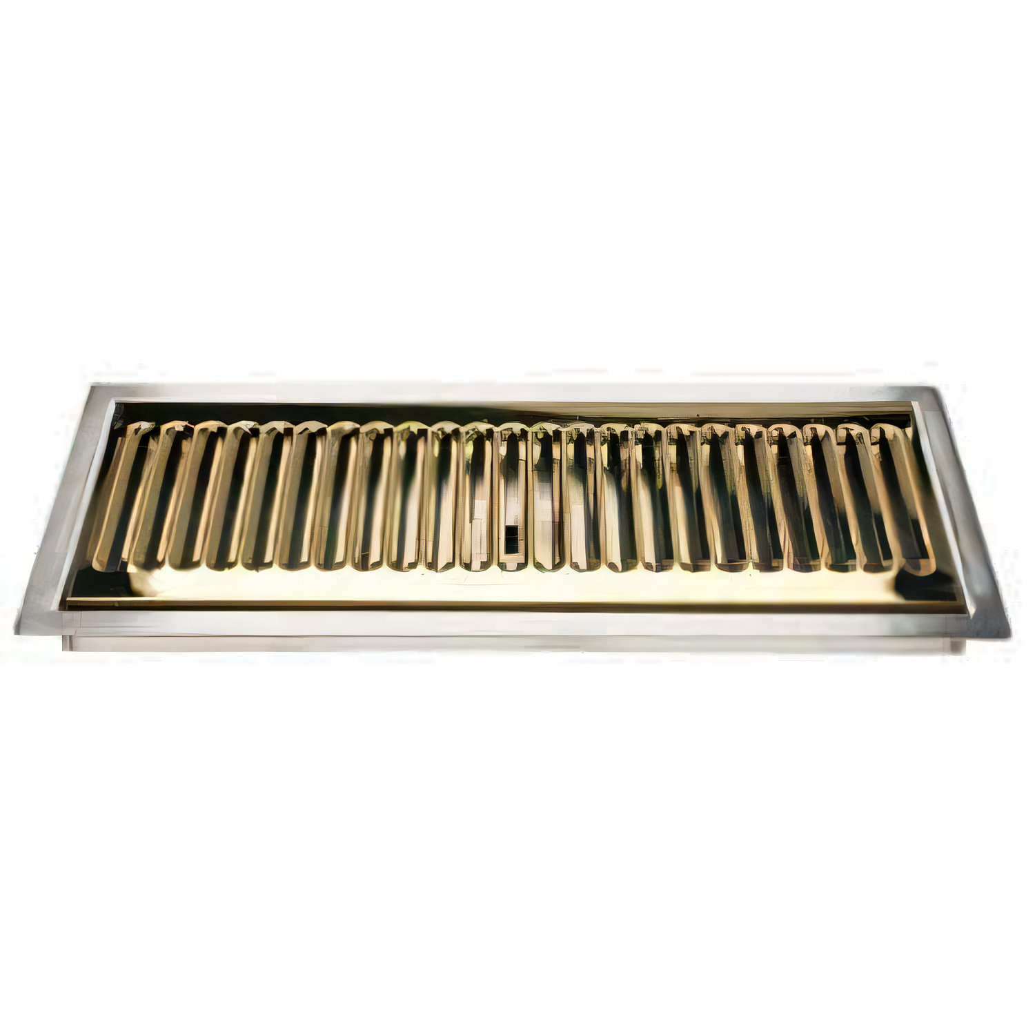 Drip Tray Trough, drop-in, 13"W x 6"D, louvered PVD brass screen, 1/2" NPT drain, 12"W x 5"D cutout required, stainless steel construction
