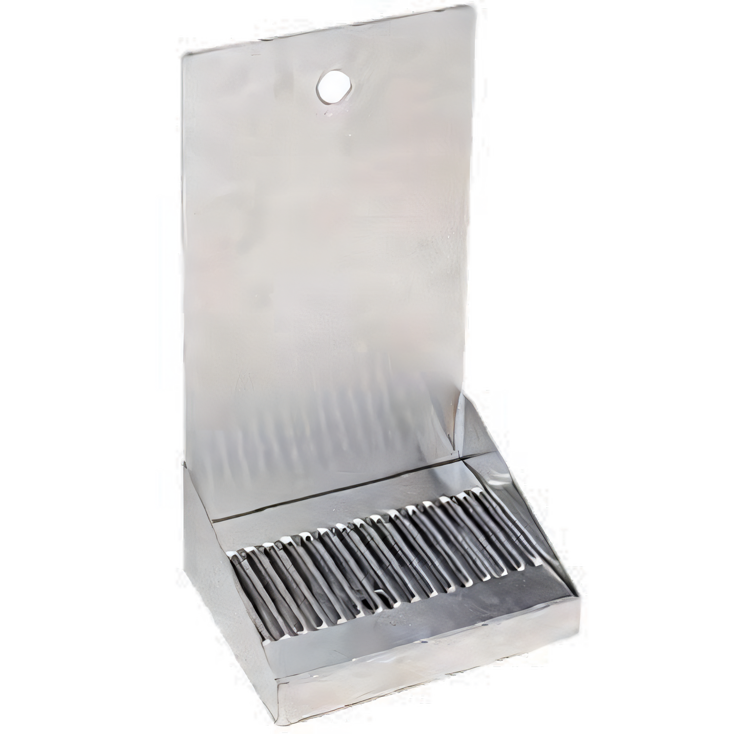 Drip Tray Trough, wall mount, 8"W x 6-3/8"D x 14"H, (1) pre-drilled faucet hole, louvered stainless steel screen, 1/2" NPT drain, stainless steel construction