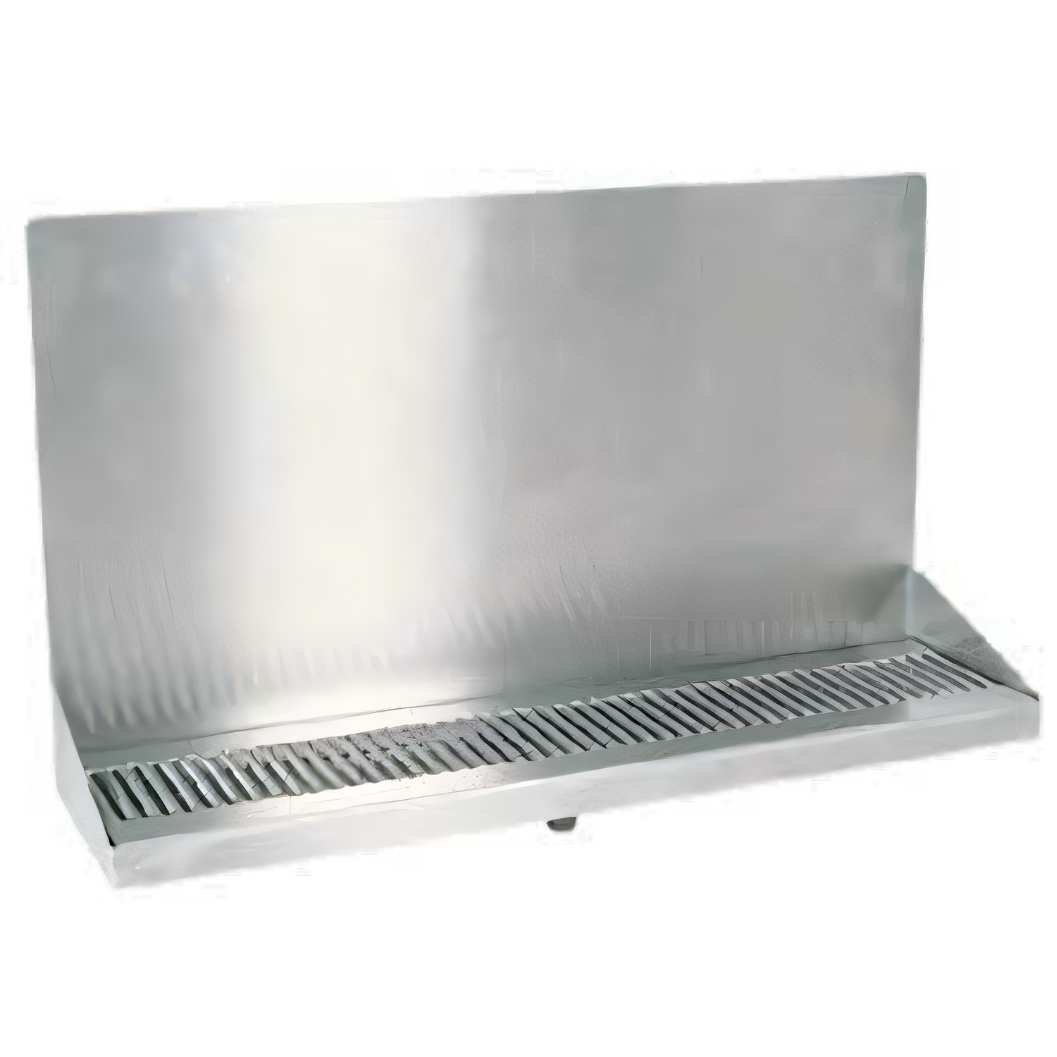 Drip Tray Trough, wall mount, 24"W x 6-3/8"D x 14"H, no pre-drilled faucet holes, louvered stainless steel screen, 1/2" NPT drain, stainless steel construction