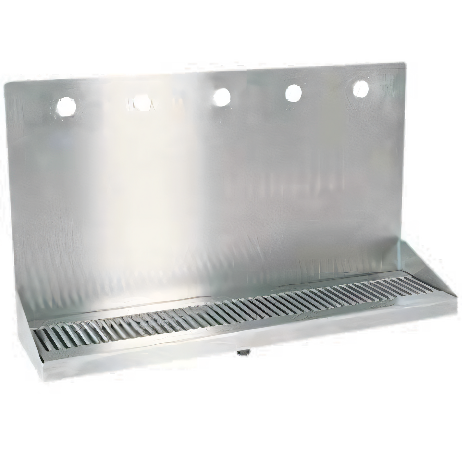 Drip Tray Trough, wall mount, 24"W x 6-3/8"D x 14"H, (5) pre-drilled faucet holes, 4" OC, louvered stainless steel screen, 1/2" NPT drain, stainless steel construction
