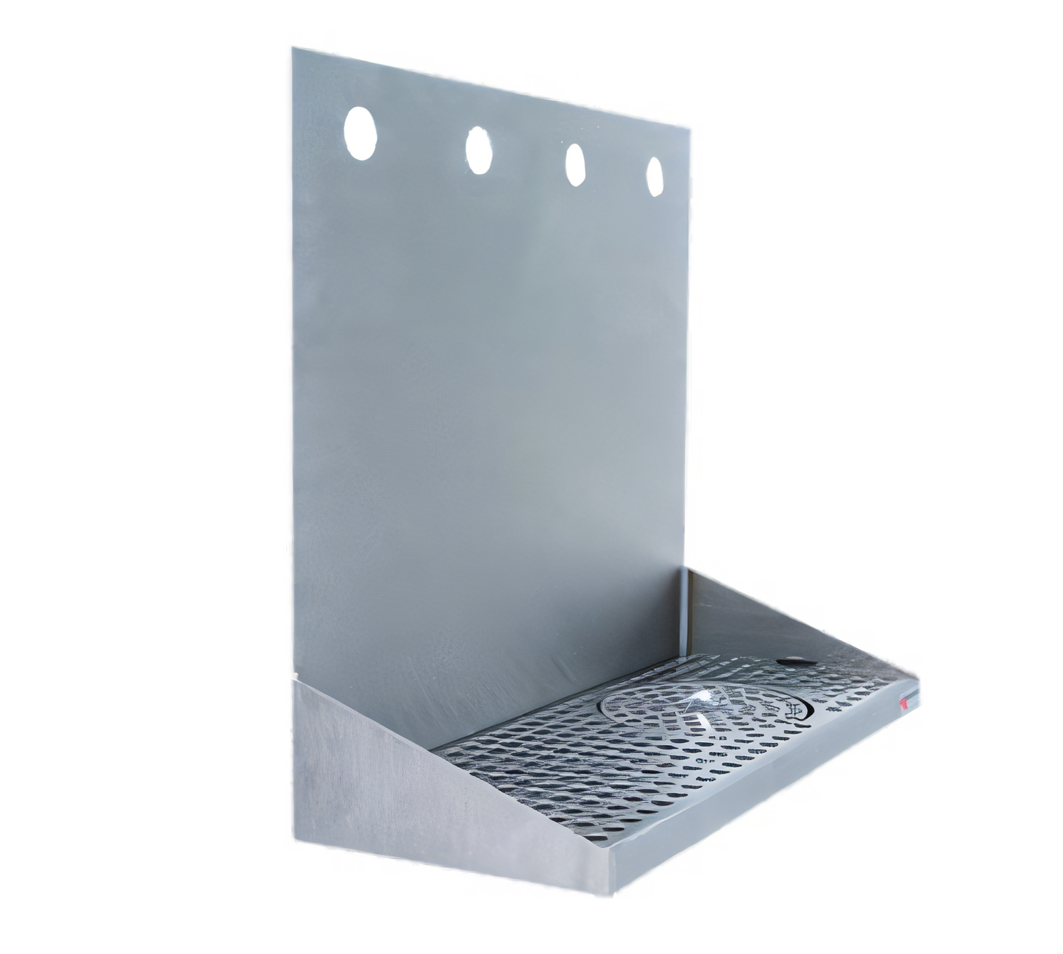 Drip Tray Trough, wall mount, 16"W x 6-3/8"D x 14"H, integral glass rinser, (4) pre-drilled faucet holes, 4" OC, perforated stainless steel screen, 1/2" NPT drain, stainless steel construction