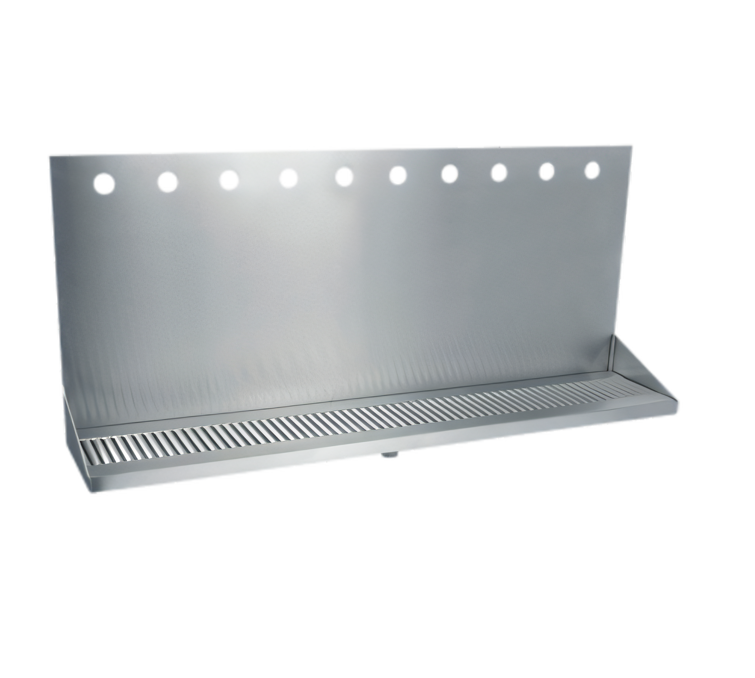 Drip Tray Trough, wall mount, 36"W x 6-3/8"D x 14"H, (10) pre-drilled faucet holes, 3" OC, louvered stainless steel screen, 1/2" NPT drain, stainless steel construction