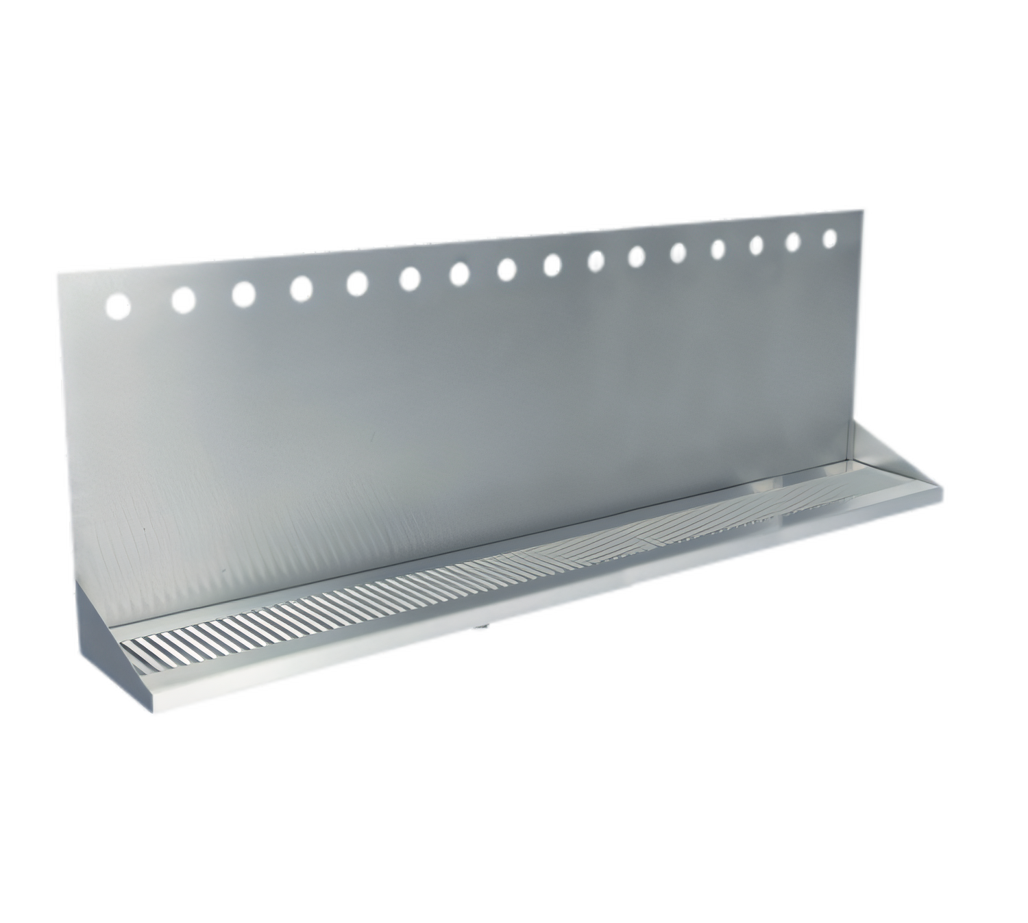 Drip Tray Trough, wall mount, 48"W x 6-3/8"D x 14"H, (16) pre-drilled faucet holes, 3" OC, louvered stainless steel screen, 1/2" NPT drain, stainless steel construction