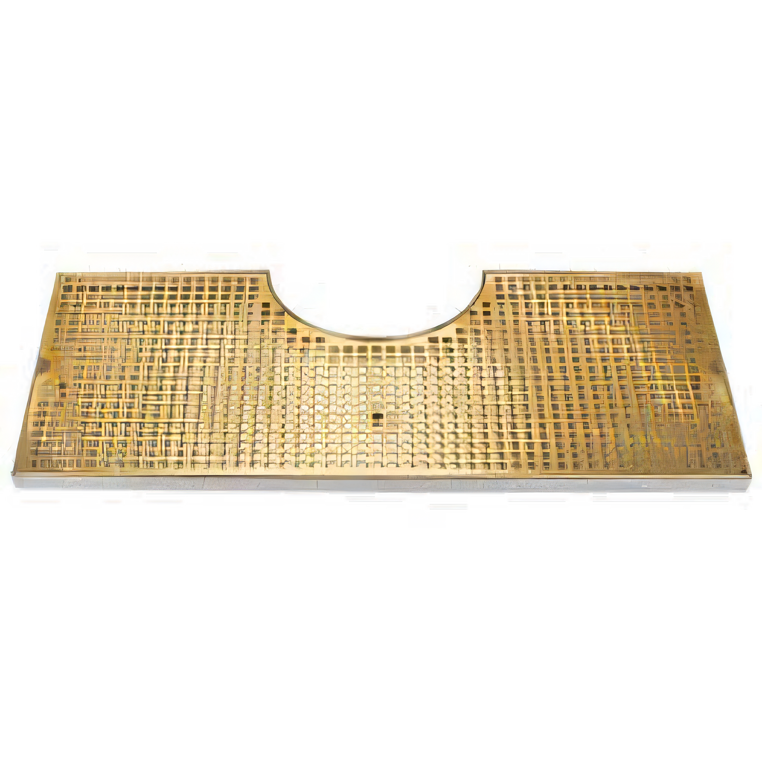 Drip Tray Trough, surface mount, 24"W x 11"D, perforated PVD brass screen, 8" diameter cutout x 4"D for column draft tower, 5/8" O.D. drain, stainless steel construction