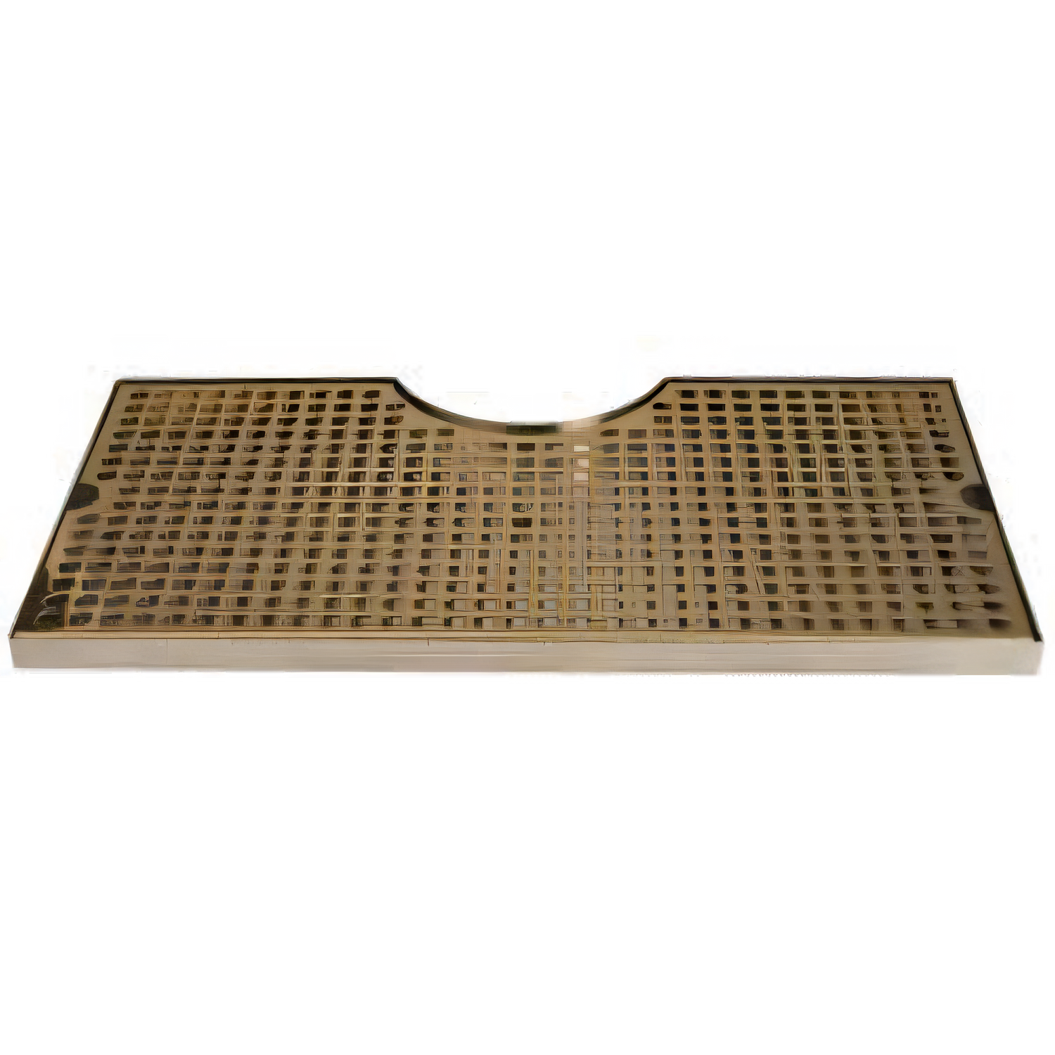 Drip Tray Trough, surface mount, 18"W x 9"D, perforated PVD brass screen, 6-1/4" diameter x 4"D cutout for column tower, 1/2" drain, stainless steel construction