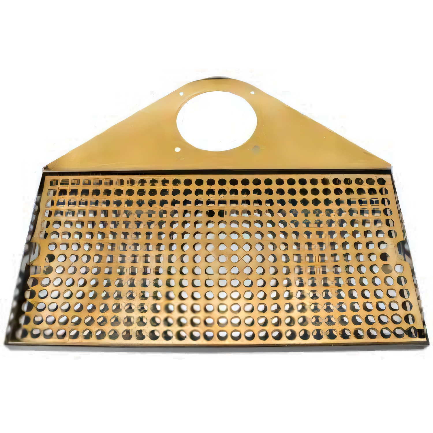 Drip Tray Trough, surface mount with tower plate, 16-5/8"W x 14-1/4"D, perforated PVD brass screen, 1/2" NPT drain, 4" diameter hole for draft tower, stainless steel construction