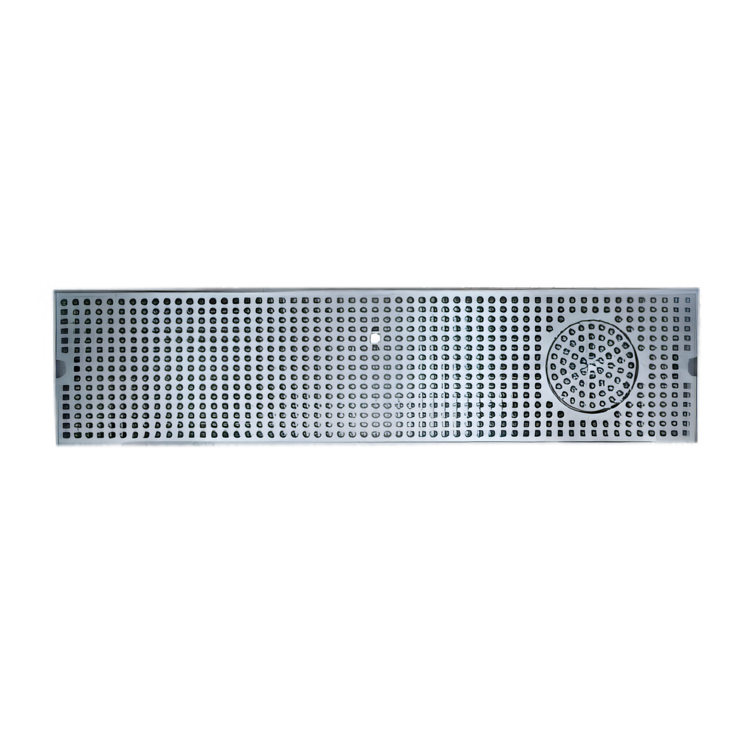 Drip Tray Trough, surface mount, 39"W x 8"D, integral glass rinser, perforated stainless steel screen, 5/8" O.D. drain, stainless steel construction