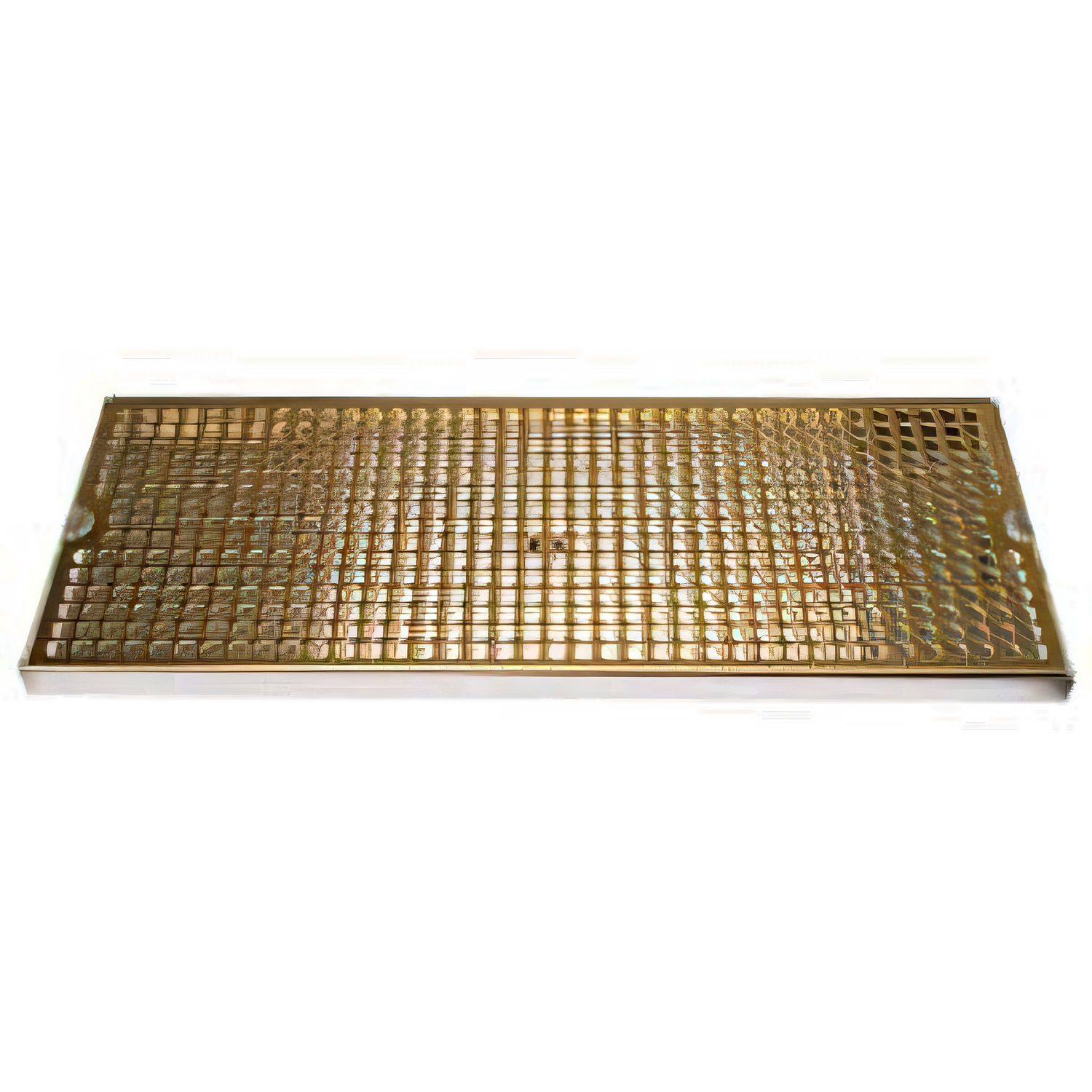 Drip Tray Trough, surface mount, 20"W x 8"D, perforated PVD brass screen, 5/8" O.D. drain, stainless steel construction