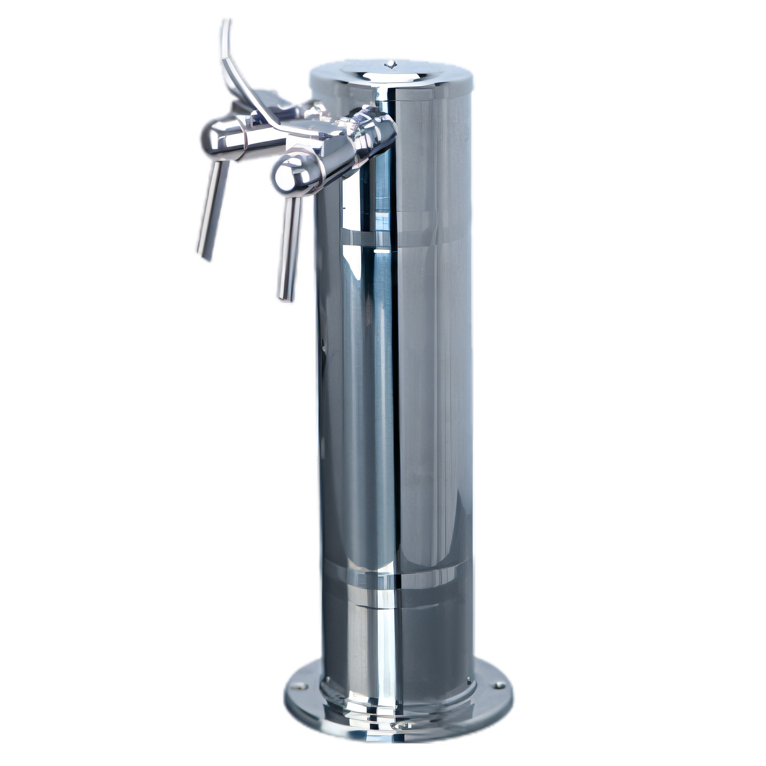 Finnesse Wine Font, countertop, 4" diameter x 16-1/2"H, air-cooled, (2) polished 304 stainless steel side pull faucets (medallion holders not included), 12" faucet clearance, 6" diameter base, 304 stainless steel shanks, includes 1/4" I.D. GEN-X product lines, mounting gaskets & hardware provided, polished stainless steel finish