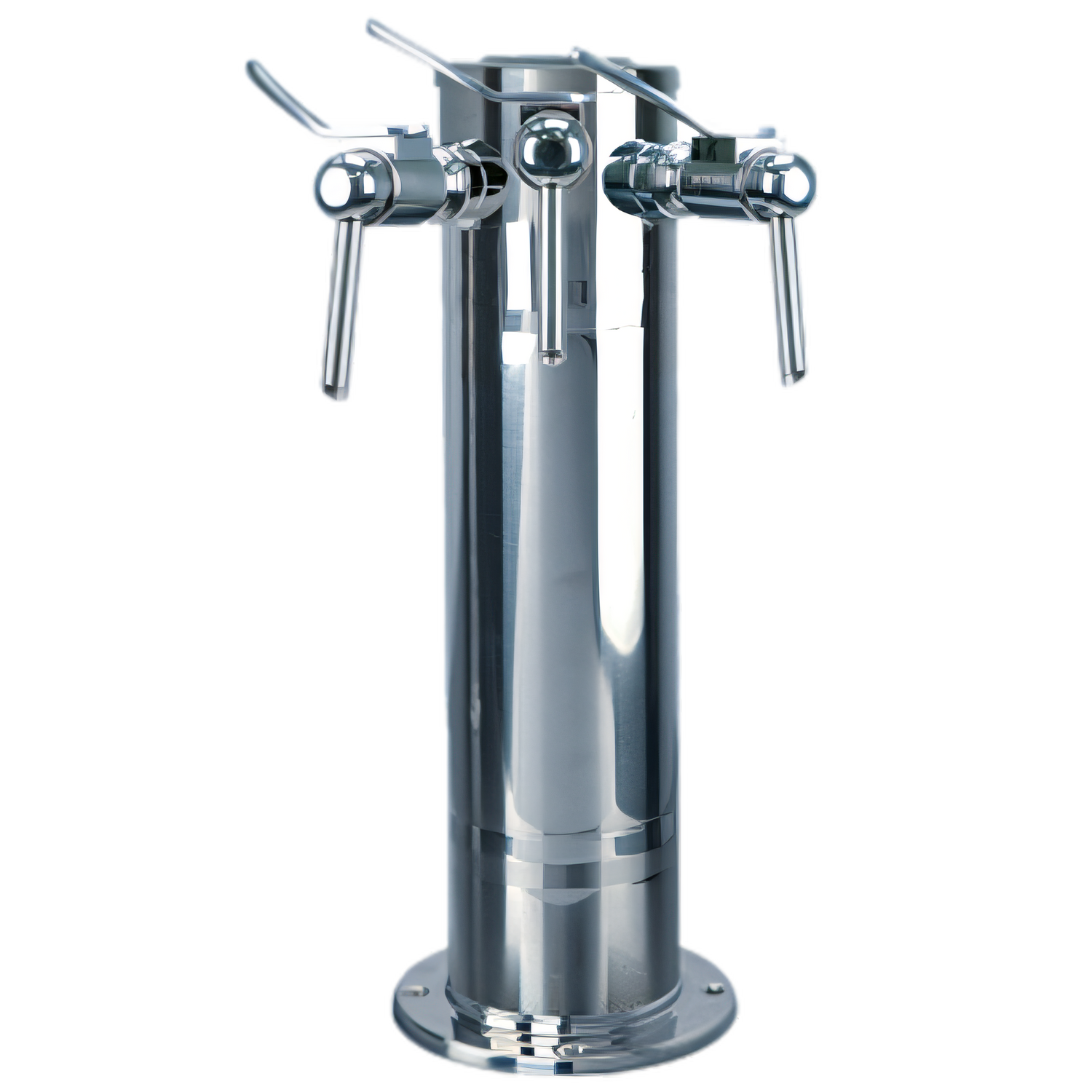 Finnesse Wine Font, countertop, 4" diameter x 16-1/2"H, air-cooled, (3) polished 304 stainless steel side pull faucets (medallion holders not included), 12" faucet clearance, 6" diameter base, 304 stainless steel shanks, includes 1/4" I.D. GEN-X product lines, mounting gaskets & hardware provided, polished stainless steel finish